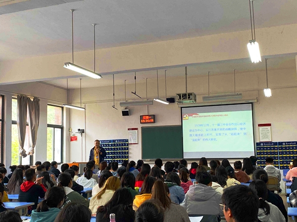 本次党课的主题为“感悟初心、检视初心、涵养初心”。胡伟围绕“在站起来富起来强起来伟大历史进程中寻找初心和使命”、“在脱贫攻坚火热战场上感受初心使命”、“努力建设让师生满意的学院”这三个主要内容,结合自身参与脱贫攻坚的亲身经历,以及通过主题教育以来学习教育的收获和感悟,为大家深入浅出的讲述了自己对于初心和使命的深刻理解,还对主题教育中自己检视出的问题,结合下一步工作打算与大家进行的了充分的沟通和交流。
