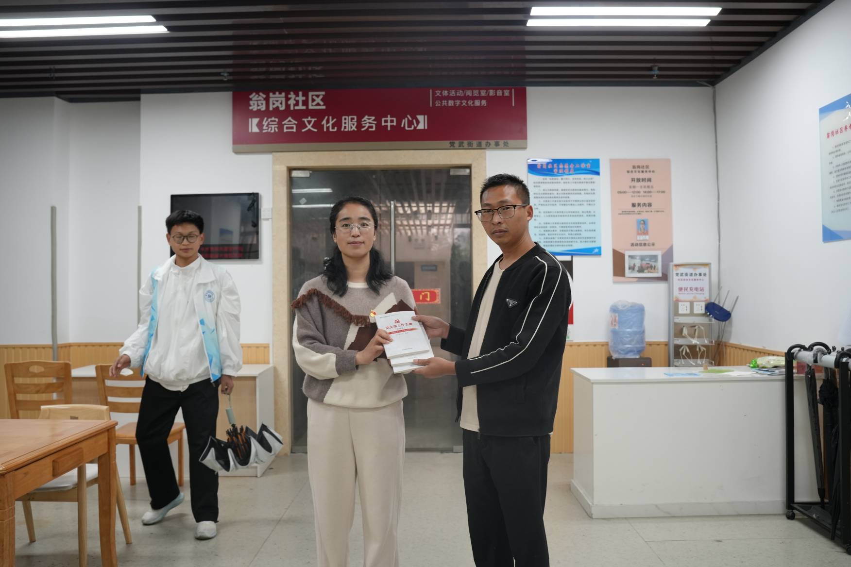学院学生党建工作中心负责老师乔志云向社区负责人详细了解了社区党支部建设和运行情况,相互交流了党建工作经验,还向社区赠送了党徽和发展党员工作手册等。