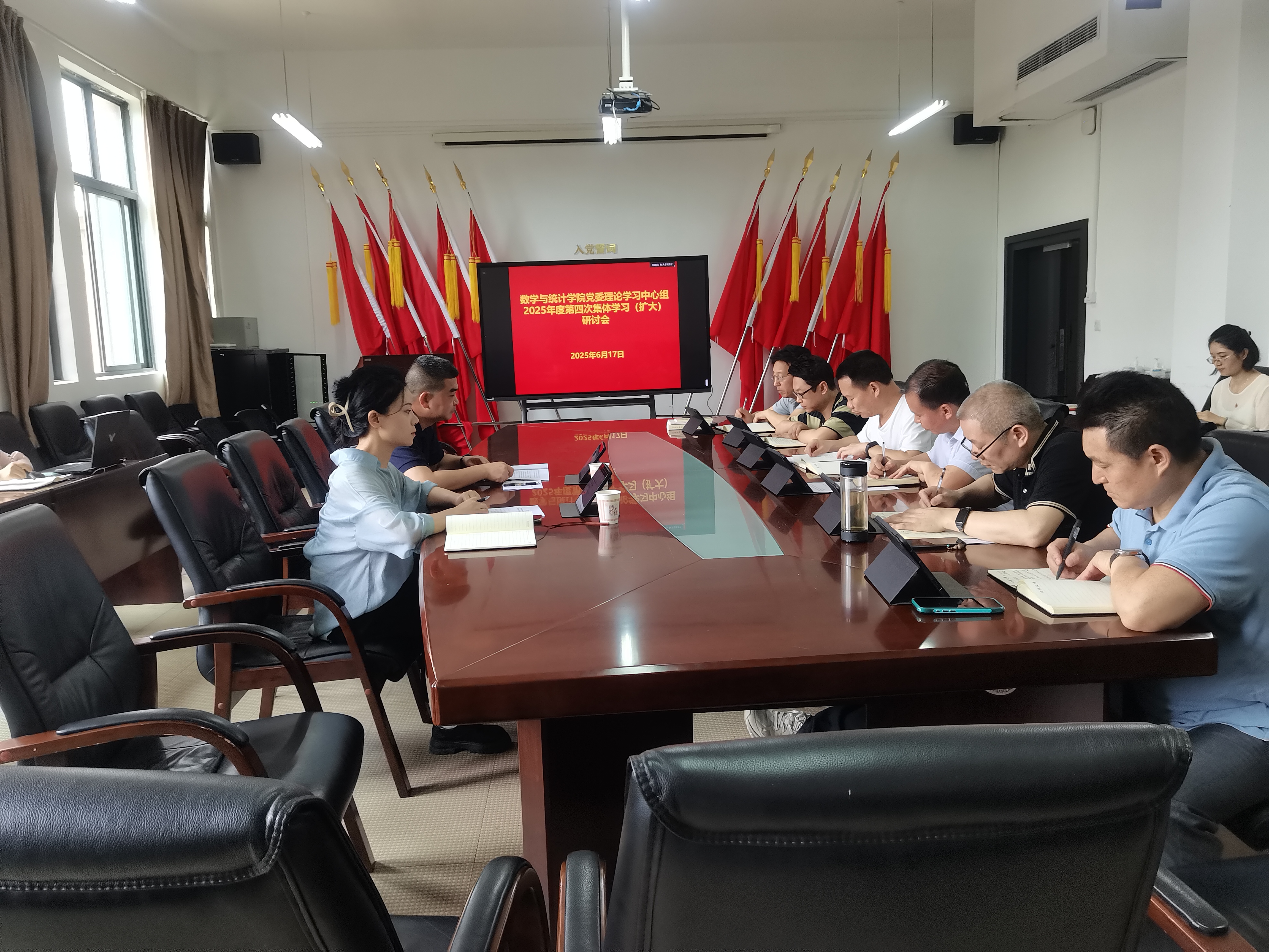 6月17日上午,小象直播 党委理论学习中心组2025年度第四次集体学习(扩大)研讨会在志学楼331会议室召开。学院党政领导班子、各科室负责人、各支部书记、各系(部)主任参加。学院党委书记虞帆出差在外,委托党委副书记朱吉韬主持。