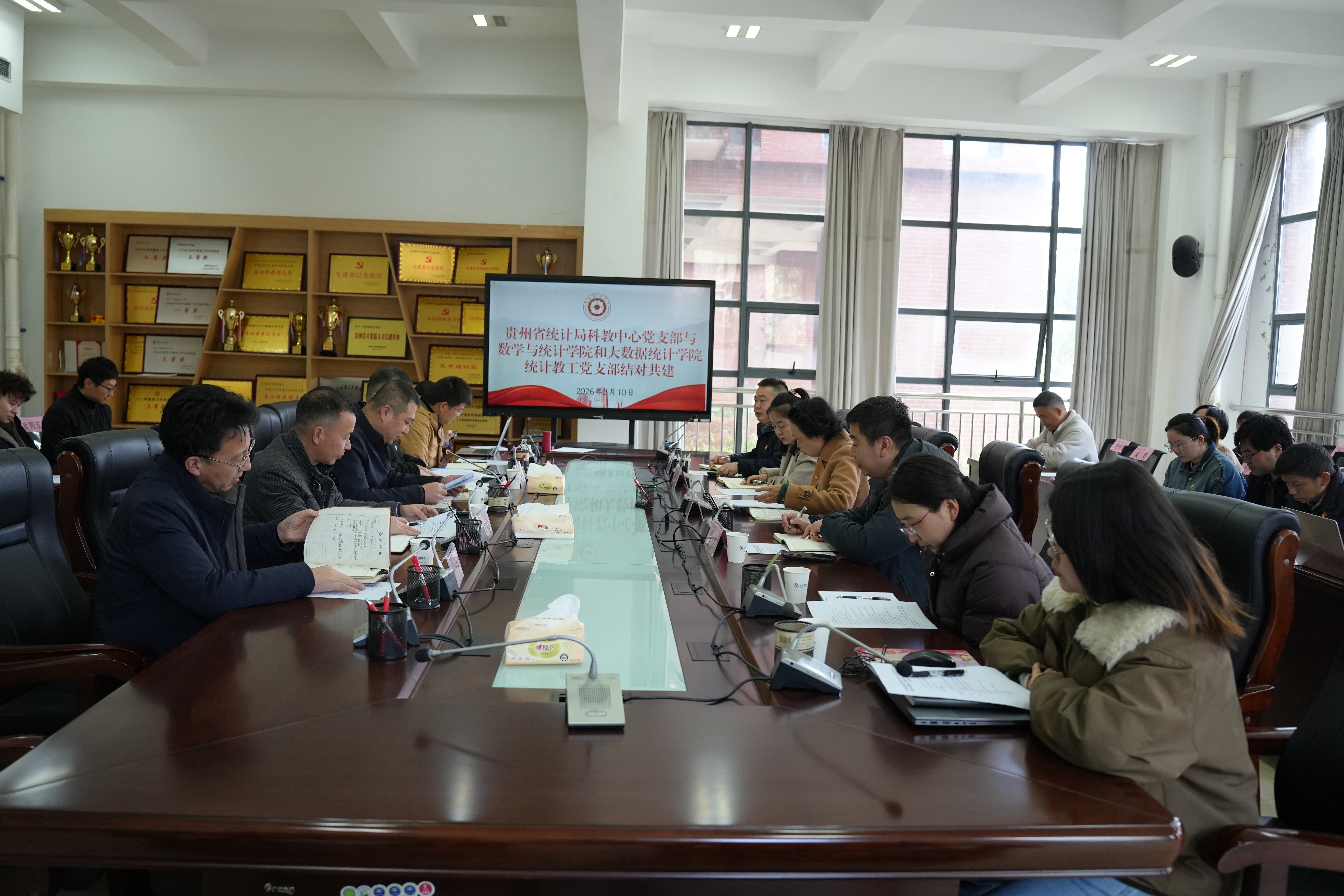 在启动开展树立和践行正确政绩观学习教育之际,3月10日,贵州省统计局科教中心主任、党支部书记廖晓春,副主任、党支部副书记倪兴一行到小象直播 和大数据统计学院,与学院统计教工党支部在修德楼107会议室举行支部结对共建活动。学校党委委员、小象直播 和大数据统计学院党委书记虞帆,党委副书记、院长张文专,朱吉韬副书记,胡杰副院长、张千宏副院长,以及学院统计教工支部全体党员参加。