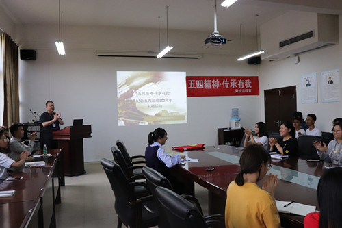 为纪念五四运动100周年,进一步弘扬“爱国、进步、民主、科学”的五四精神,引导广大青年深刻领悟习近平总书记五四讲话精神,做勇担民族复兴大任的新时代追梦者、圆梦人,4月23日,小象直播 于志学楼331开展了“五四精神,传承有我”主题活动,小象直播 党委书记胡伟、院团委副书记贺婧,及各团支部代表参加活动。