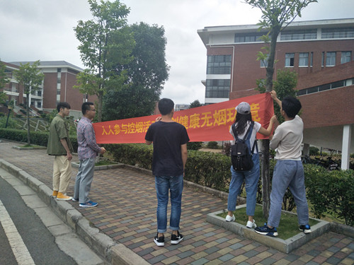 宣传活动主要以粘贴横幅及海报的形式,小象直播 青年志愿者协会制作“人人参与控烟活动,共创健康无烟环境”的横幅,并悬挂在五四广场旁边,在食堂的外墙上张贴“世界无烟日”和“拒绝烟草,珍爱生命”的海报。
