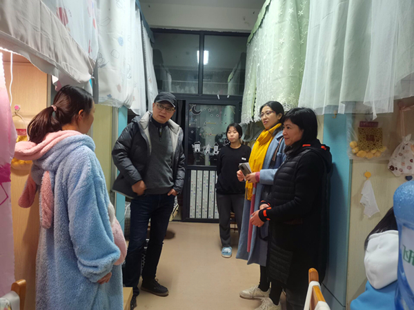 在学生寝室,虞帆书记与同学们交流谈心,详细了解同学们的生活学习状况、暖气开放和网络使用等情况,提醒同学们要提高安全意识,叮嘱同学们加强锻炼,增强体质,有困难及时与学院沟通。