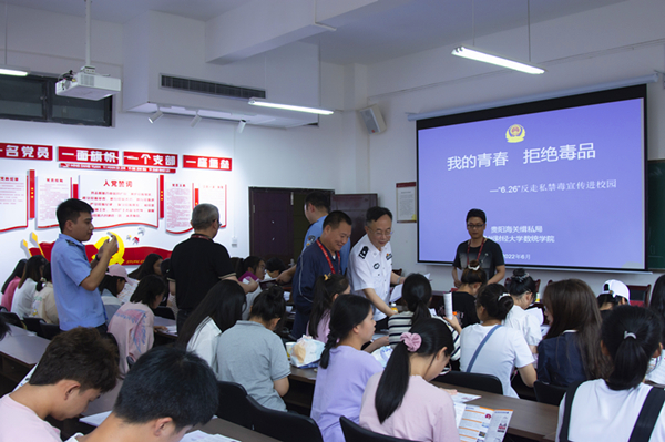 6月23日,在第35个国际禁毒日来临之际,贵州省打私办、贵阳海关缉私局到小象直播 开展“我的青春,拒绝毒品——反走私禁毒宣传进校园主题活动”。贵阳海关缉私局办公室副主任孙伟、法制处民警姜佳旻、杜峰峰,小象直播 院长焦建军、副院长余孝军出席活动。小象直播 辅导员舒瑜及100名学生代表参加此次活动。会议由小象直播 党委副书记李书主持。