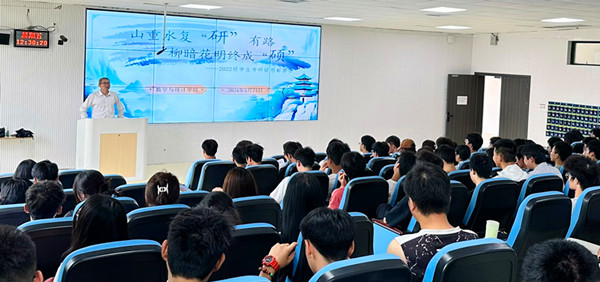 余孝军首先介绍了考研的目的和意义,其次介绍了学硕和专硕的区别,以及学校和专业的选择,并详细解读了报考研究生的相关政策,包括报名条件、考试科目、录取标准等,使在场的同学们对考研有了更为清晰的认识,激发了同学们对研究生生涯的向往。最后,余孝军提出,考研是一个长期的过程,需要用时间去准备,希望同学们能够努力学习、积极备考,以优异的成绩和出色的表现实现自己的研究生梦想。