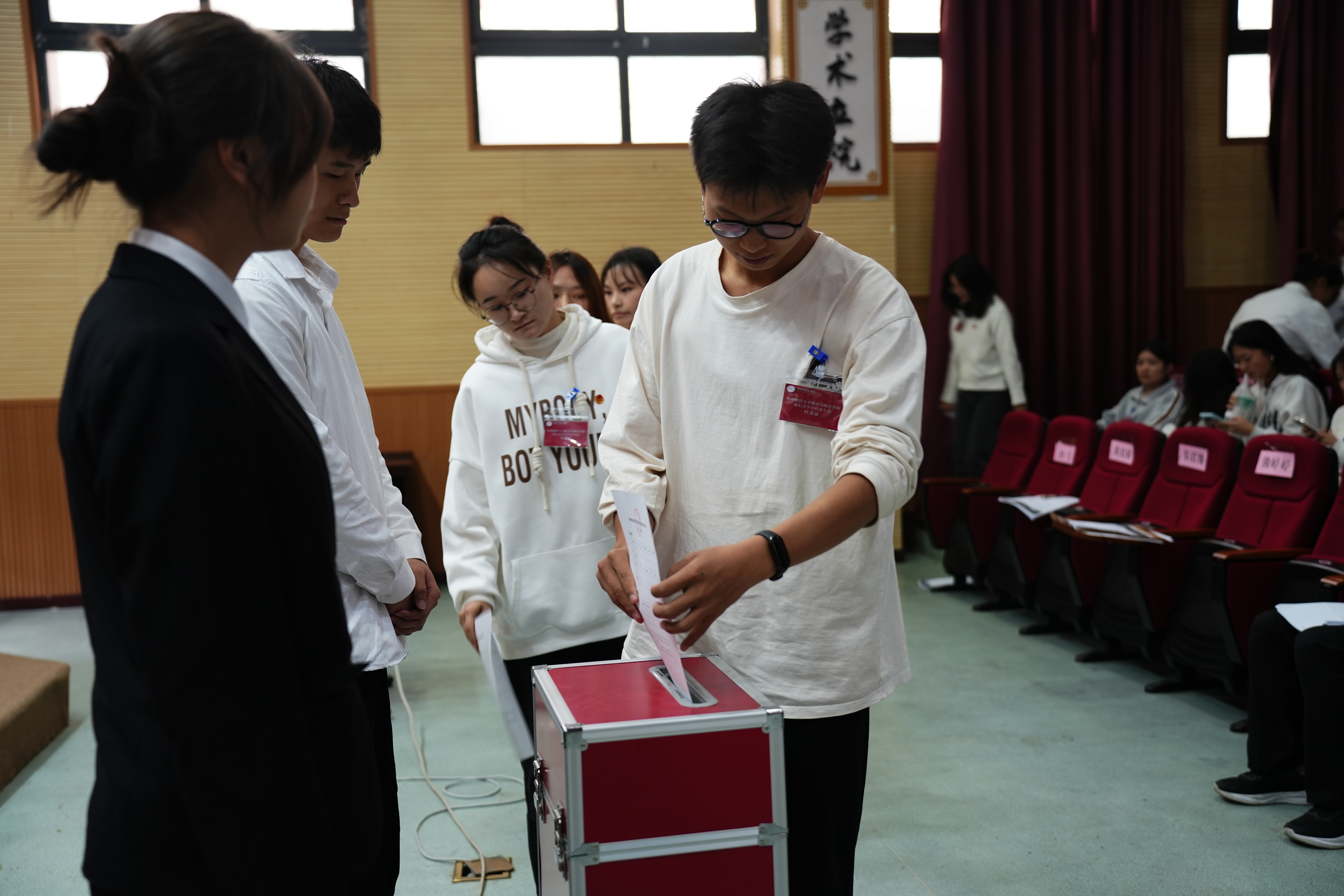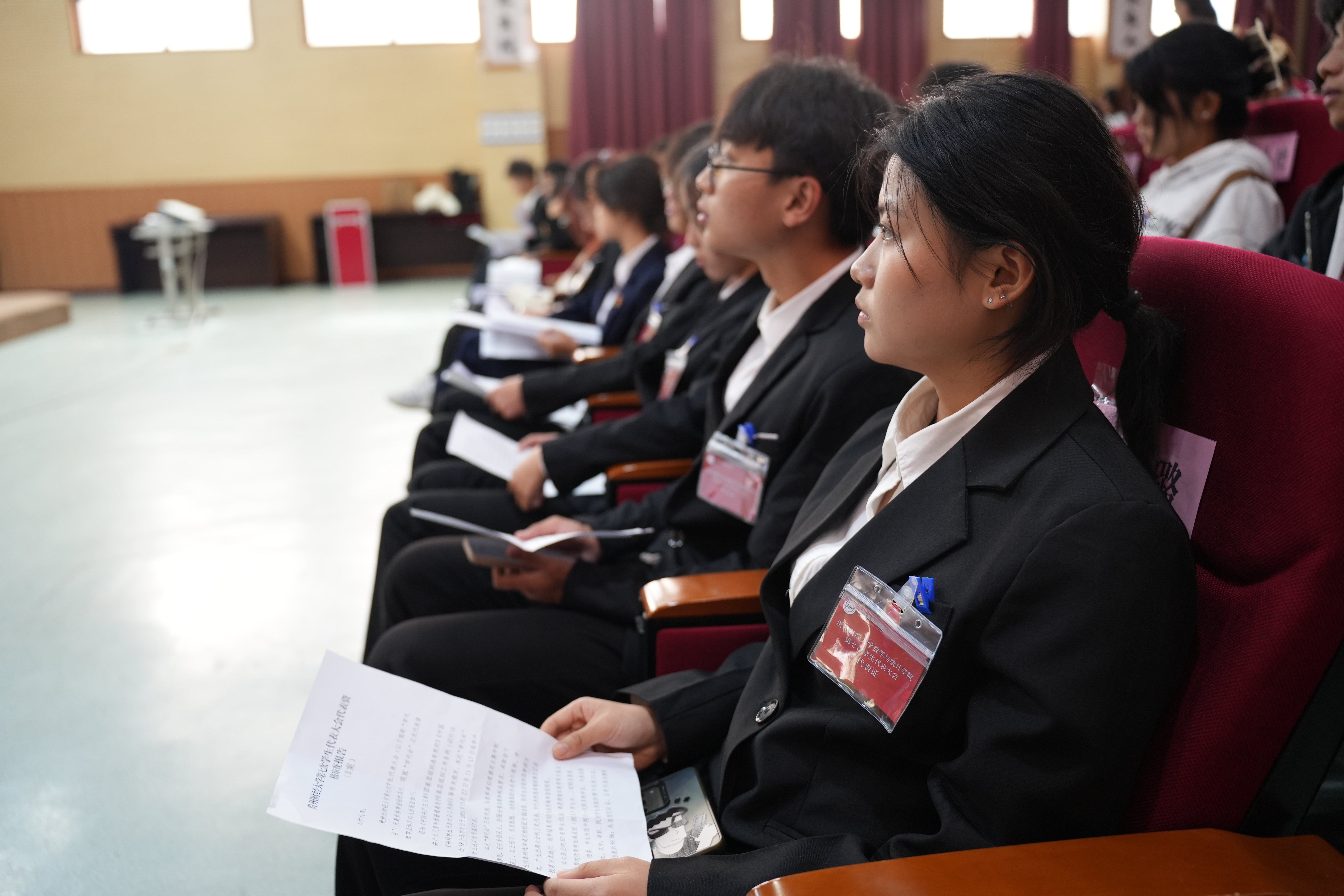 2024年11月8日,小象直播 第七次学生代表大会在崇德楼报告厅顺利举行。出席本次大会的有小象直播 学院党委副书记李书、党委副处级专职组织员余纯、校团委组织部部长赵红亮、院团委书记贺婧及来自各班级的学生代表。