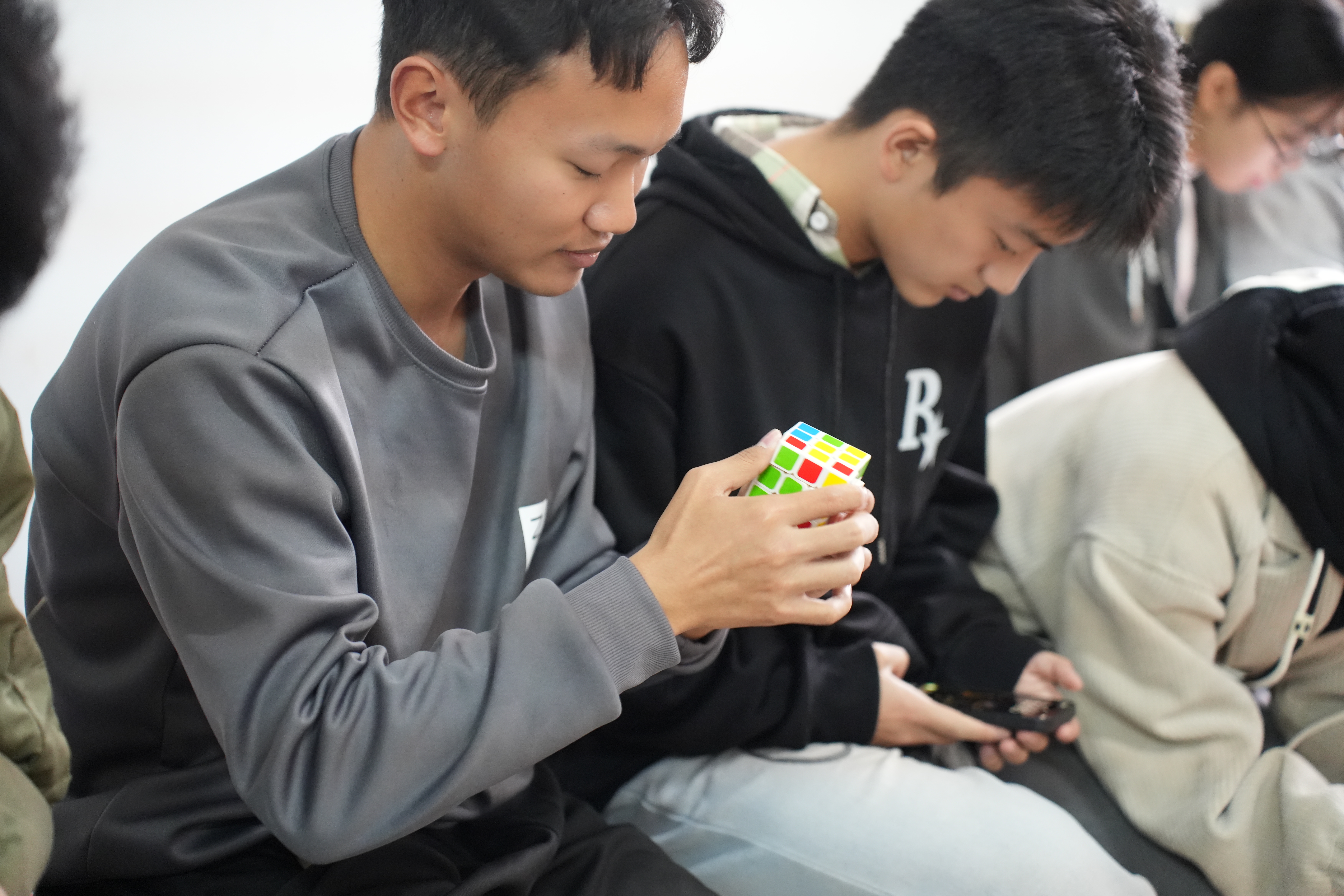 活动内容包含华容道、魔方、24点等经典数学游戏。活动现场,华容道赛区气氛热烈,选手们手指飞速移动滑块,争分夺秒为曹操“解围”,展现对最优解的深入探索;魔方区,彩色方块在选手手中快速翻转,复原过程尽显空间思维与手眼协调能力;24点游戏中,大家巧用四则运算组合数字,思维碰撞火花四溅。这些游戏不仅展示了学生的反应力、空间想象能力和快速记忆能力,还促进了同学们之间的交流。