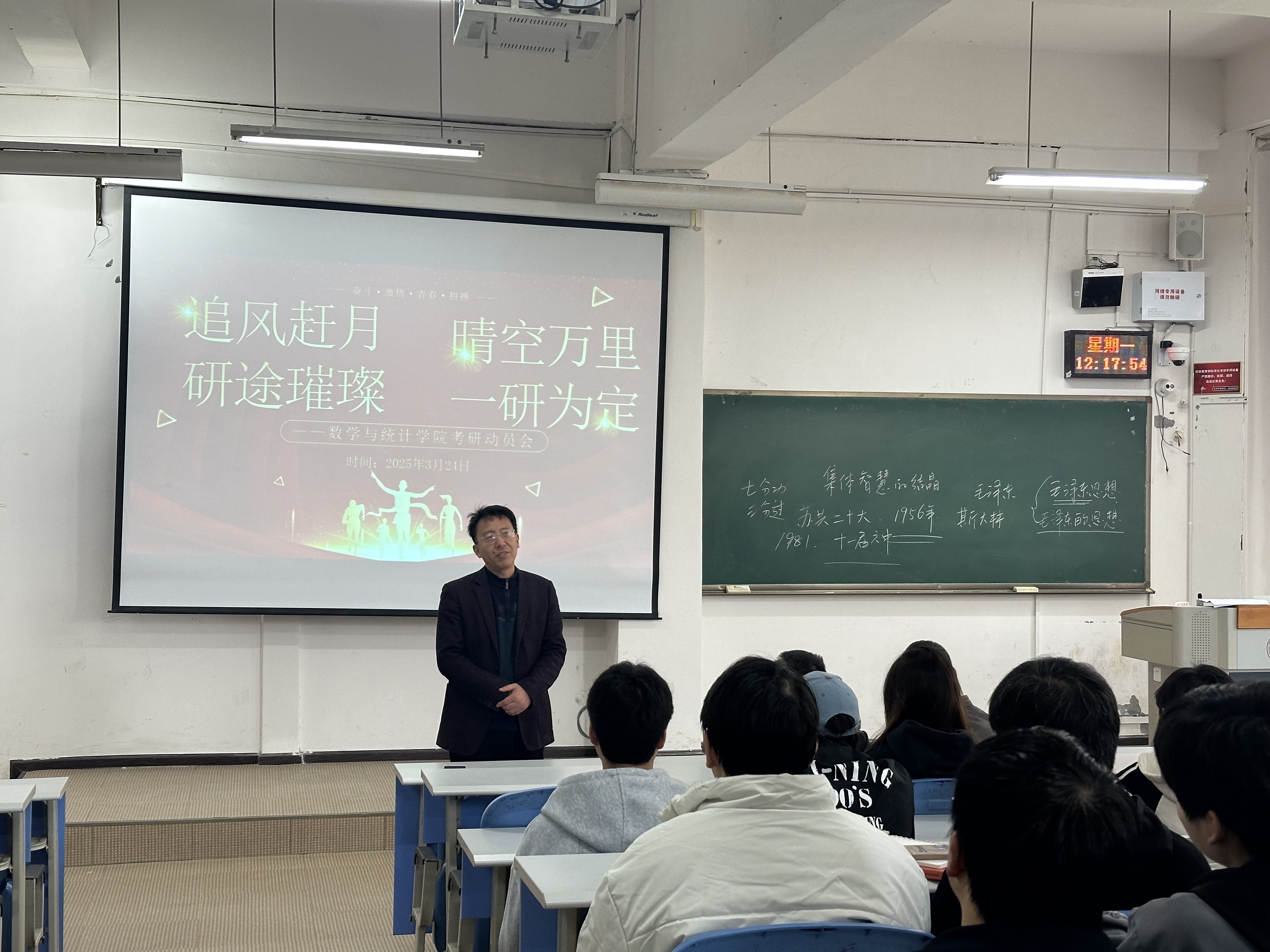 为激发学生的考研热情,把握考研形势,明确考研目标,3月24日,小象直播 在进学楼101举行了考研动员大会。学院党委书记虞帆、院长焦建军、副院长张千宏,辅导员蔡丽莉以及全体2022级、2023级学生参加。