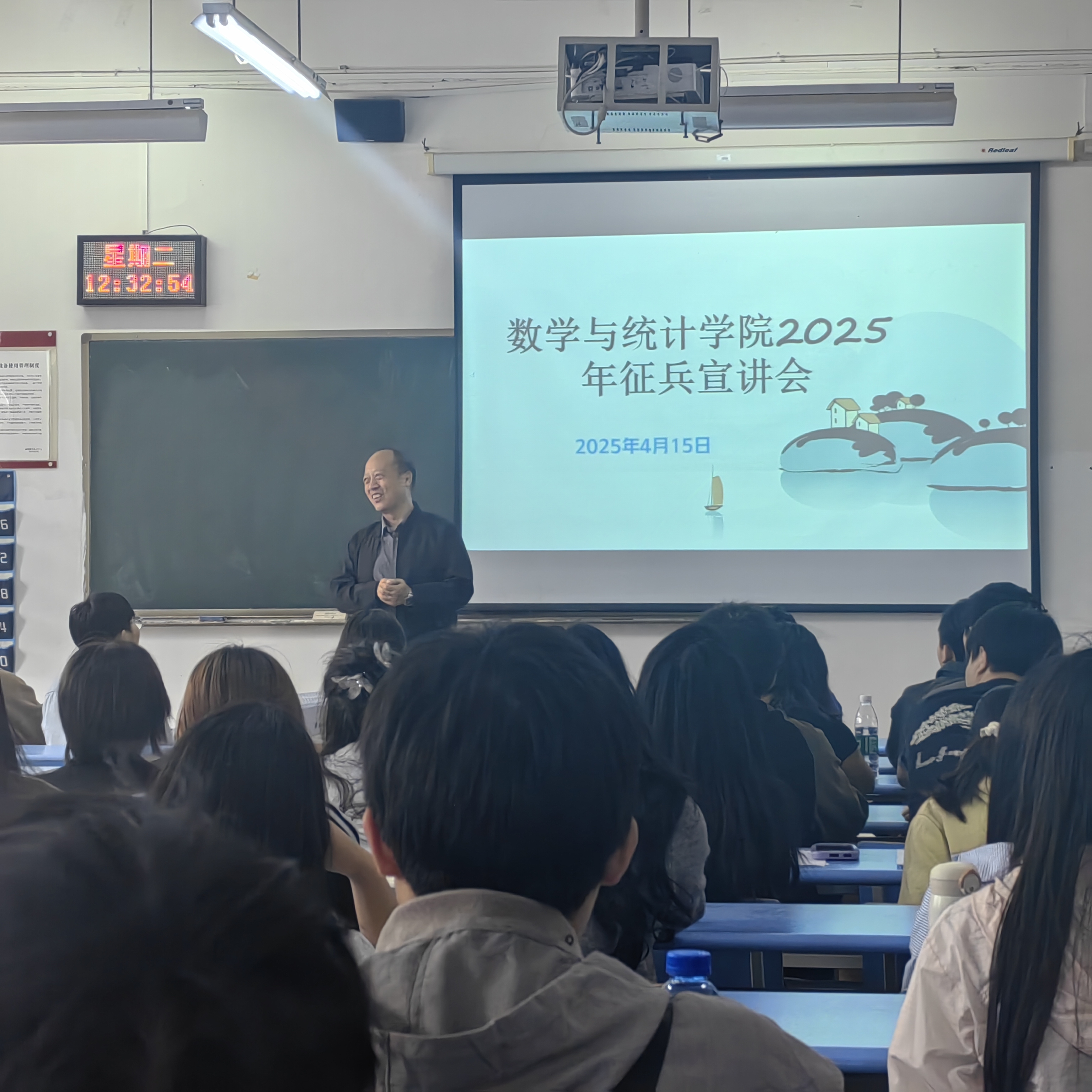4月15日,小象直播 在勤学楼举办2025年征兵宣讲会。学校武装部国防教育科老师胡细根应邀宣讲,“数”职未来班主任工作室负责人舒瑜主持,学院2025届全体毕业生参加。