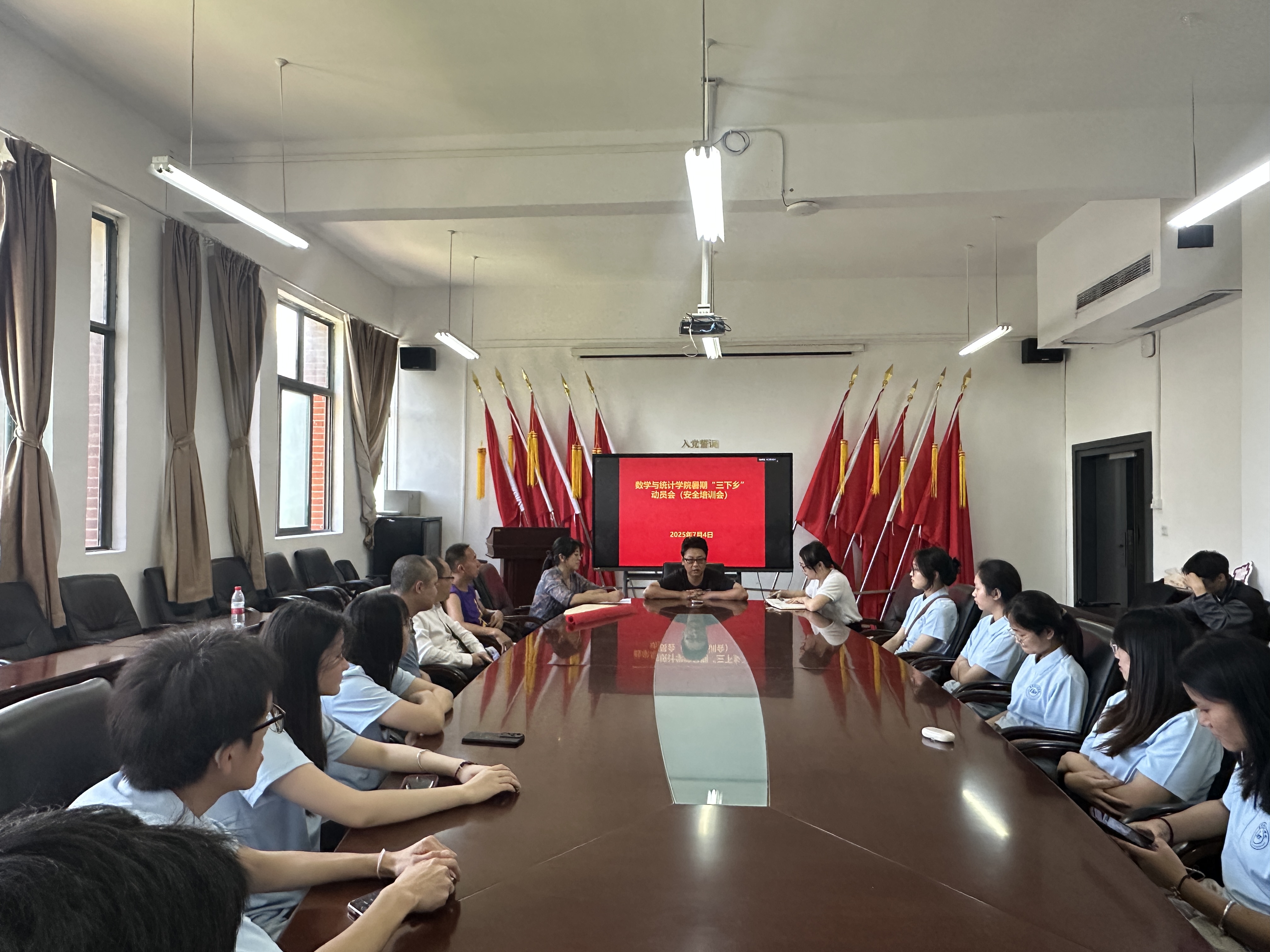 为了深入学习习近平总书记在贵州考察时的重要讲话精神,组织青年学子深入基层实践历练、增长见识才干、服务社会发展,7月4日,小象直播 2025年“青春为中国式现代化挺膺担当”暑期“三下乡”社会实践活动出征仪式在志学楼331会议室举行。学院党委副书记李书、团委书记贺婧和带队老师陶朝英、刘轶中、甘文良、王腾毅,以及全体“三下乡”社会实践团队成员参加。