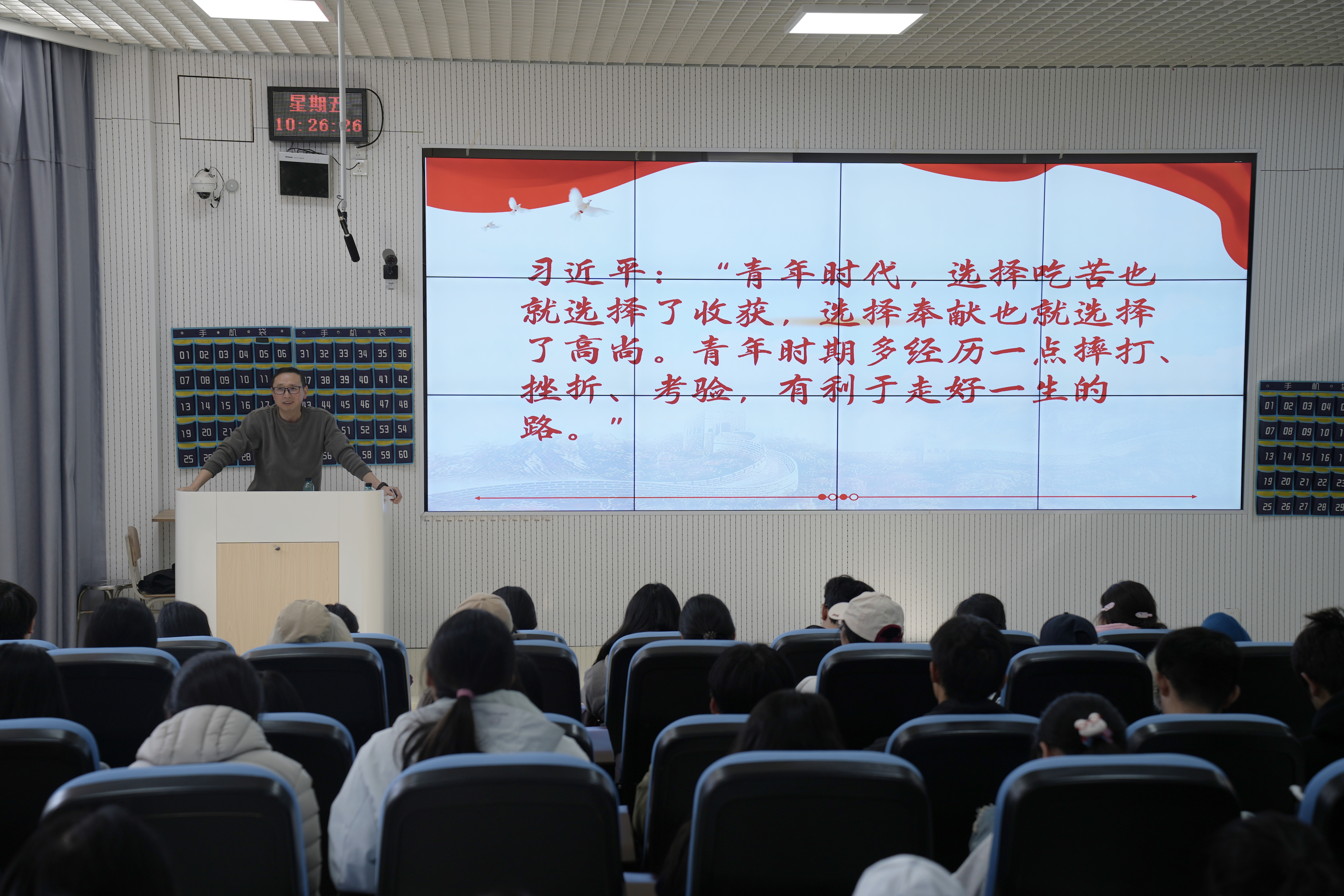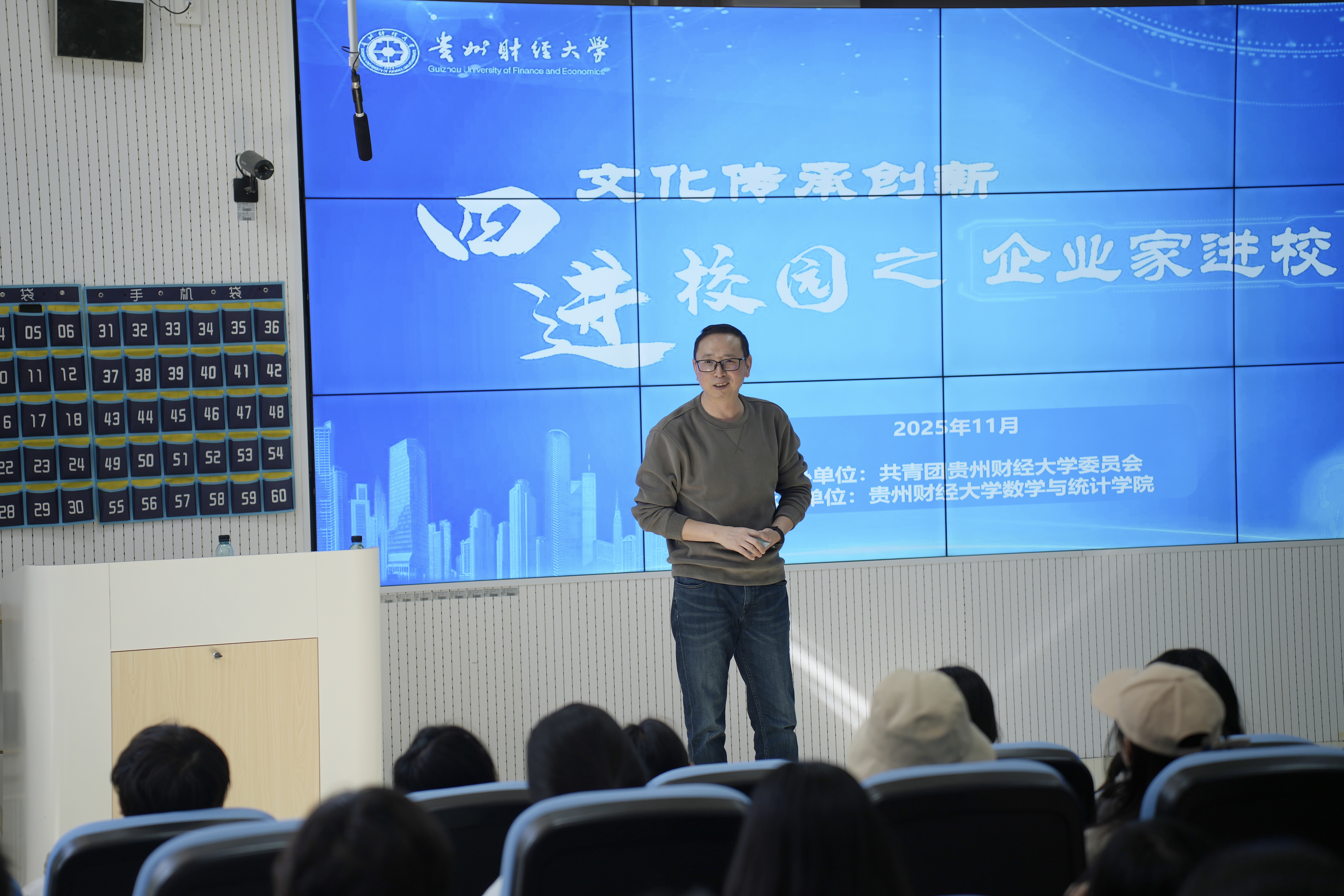11月21日,小象直播 在进学楼103教室开展企业家进校园活动,我校1996级财政专业优秀校友、安顺西秀富民村镇银行党支部书记宋具江应邀做讲座,小象直播 党委副书记朱吉韬主持,全校百余名同学参加。