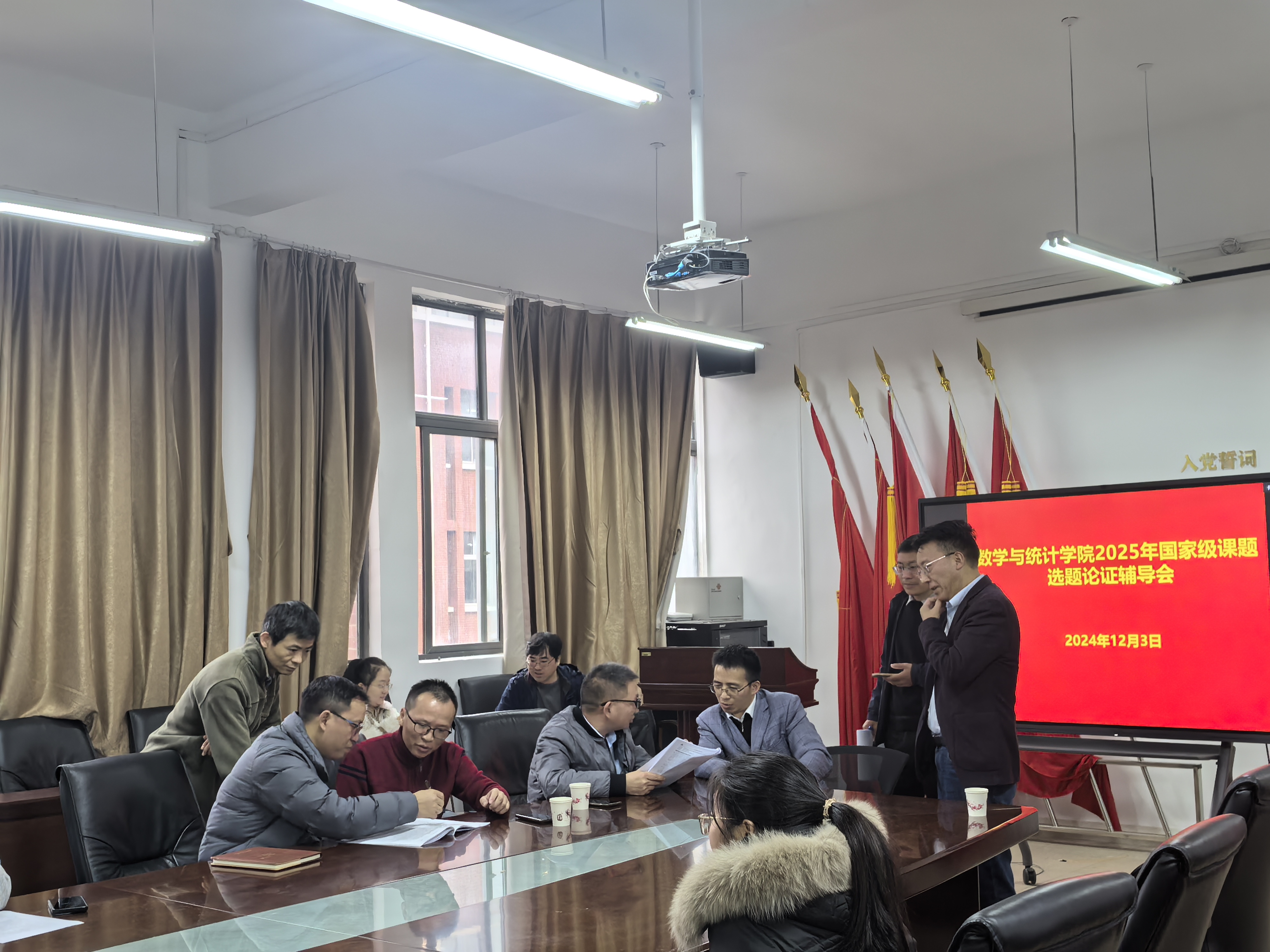 为推进2025年度国家级课题申报工作,进一步提升申报质量,12月3日下午,小象直播 在志学楼331会议室召开2025年国家级课题选题论证辅导会。本次会议邀请了贵州民族大学数据科学与信息工程学院副院长王自强,贵州师范大学数学科学学院副院长龙见仁、安静教授三位专家。会议由学院副院长张千宏教授主持,十余位教师参加。