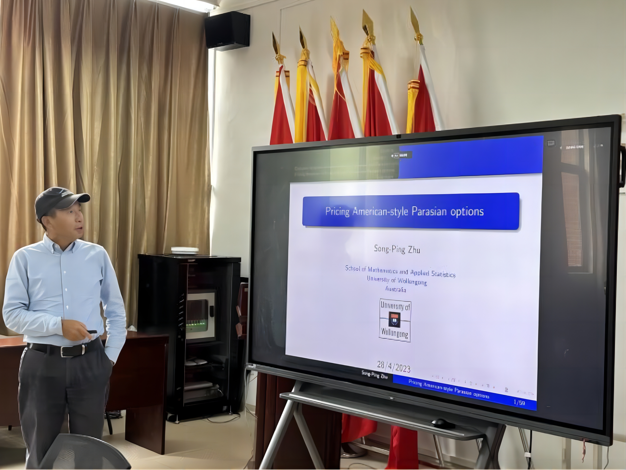 诸颂平以“美式Parasian期权的定价”为主题,将美式Parasian期权的定价问题转化为一对耦合的三维PDE系统的求解问题。在这次演讲中,诸頌平教授演示了如何通过积分方程方法克服数值求解一对耦合的三维PDE系统的主要困难。并且利用计算出的最优行权价格,定量地讨论了在所谓的“跟踪时钟”时间累积变化的情况下,美式的向上敲出Parasian期权应该比Parisian期权早多少时间执行。