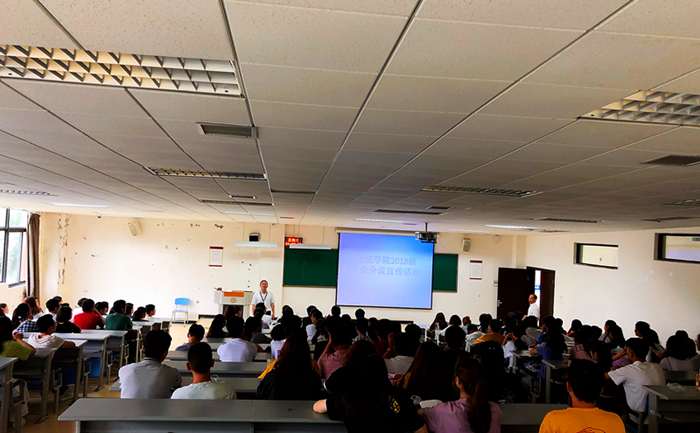 6月26日,小象直播 在乐学楼阶1-1教室举行2018级专业分流宣传活动,小象直播 副院长余孝军、数学系王进伟博士、统计系段星德博士、经济统计学吴敬博士、2018级辅导员以及2018级全体学生参加。活动由学院副院长余孝军主持。 余孝军解读了专业分流细则,并针对专业分流中加分、减分项目以及专业分流的流程向学生作了细致的讲解,对学生提出的问题作了详细的解答。学院应用数学系王进伟博士、统计系段星德博士、经济统计学吴敬博士分别对数学与应用数学、统计学、经济统计学三个专业的培养目标、师资队伍、专业课程和就业方向等作了介绍。