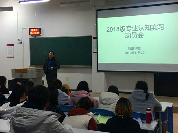 11月29日中午,小象直播 在进学楼阶2-1召开专业认知实习动员会。会议由冯大河(挂职)副院长主持,贵州省社情民意调查中心实习负责人雷磊以及2018级全体学生参加此次动员会。