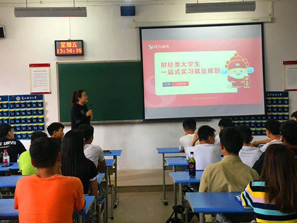 随后,实习单位代表,时代顾邦教育集团创始人、董事长陈小莉首先为同学们做了题为《实习促就业》知识讲座。他介绍了银行实习工作的重要性和工作内容、银行实习简历申报的要领和实习面试技巧、职场工作必须回避的三大坑等相关内容,为学生指明了实习方向。