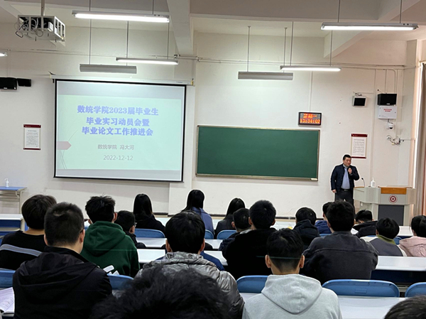 12月12日,小象直播 在进学楼阶2-2召开2019级本科生毕业实习动员会暨毕业论文指导会,学院应用数学系主任冯大河做了实习动员及毕业论文写作指导,2019级全体学生参加。