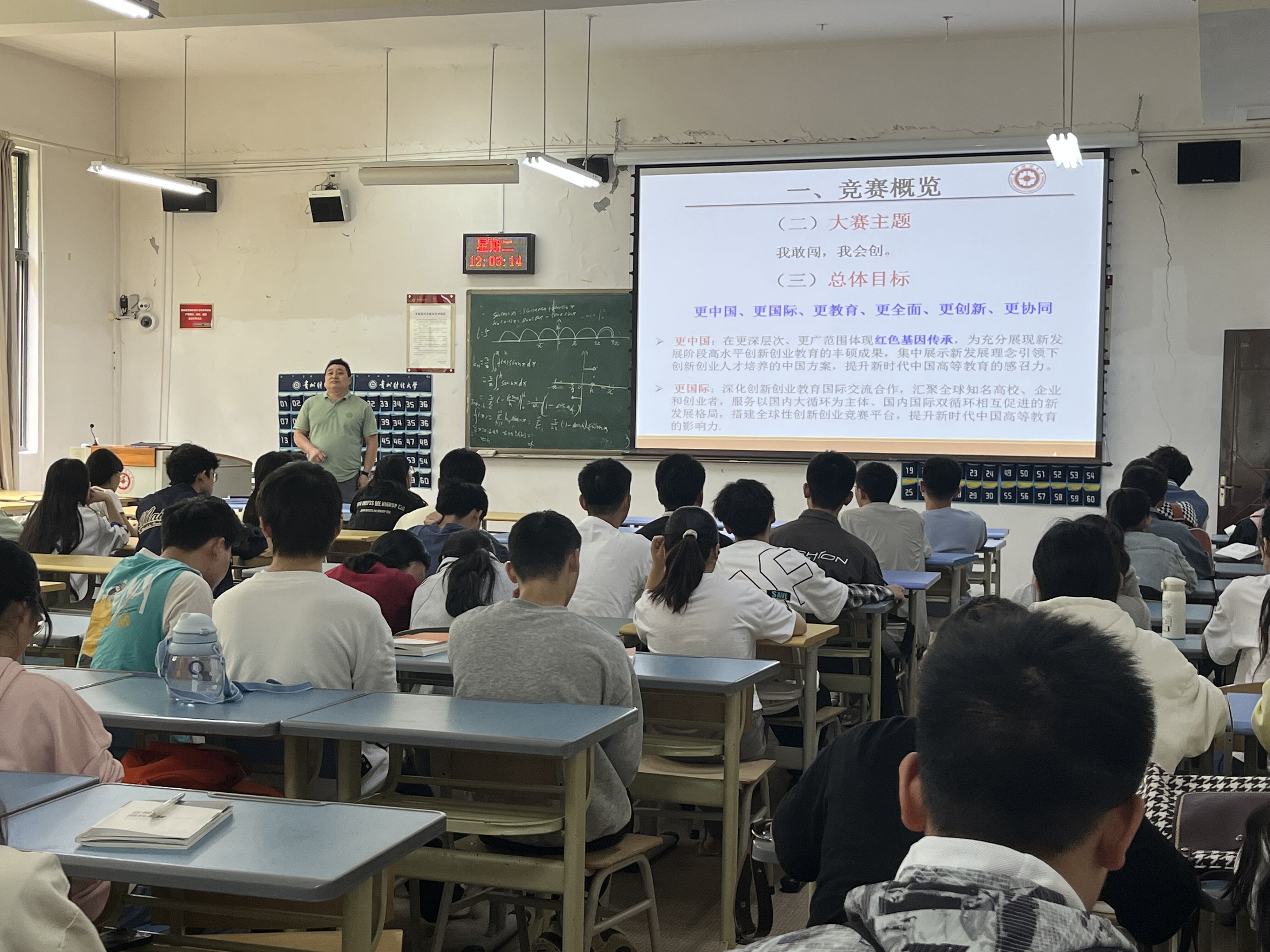 冯大河就“互联网+”大学生创新创业大赛的竞赛概览、赛道类型(高教主赛道、“青年红色筑梦之旅”赛道)、我省去年获奖作品情况及学院初步安排等几个方面做了详细介绍,他希望同学们都能参与到第九届“互联网+”大学生创新创业大赛中来,提升实践能力、团队协作能力。