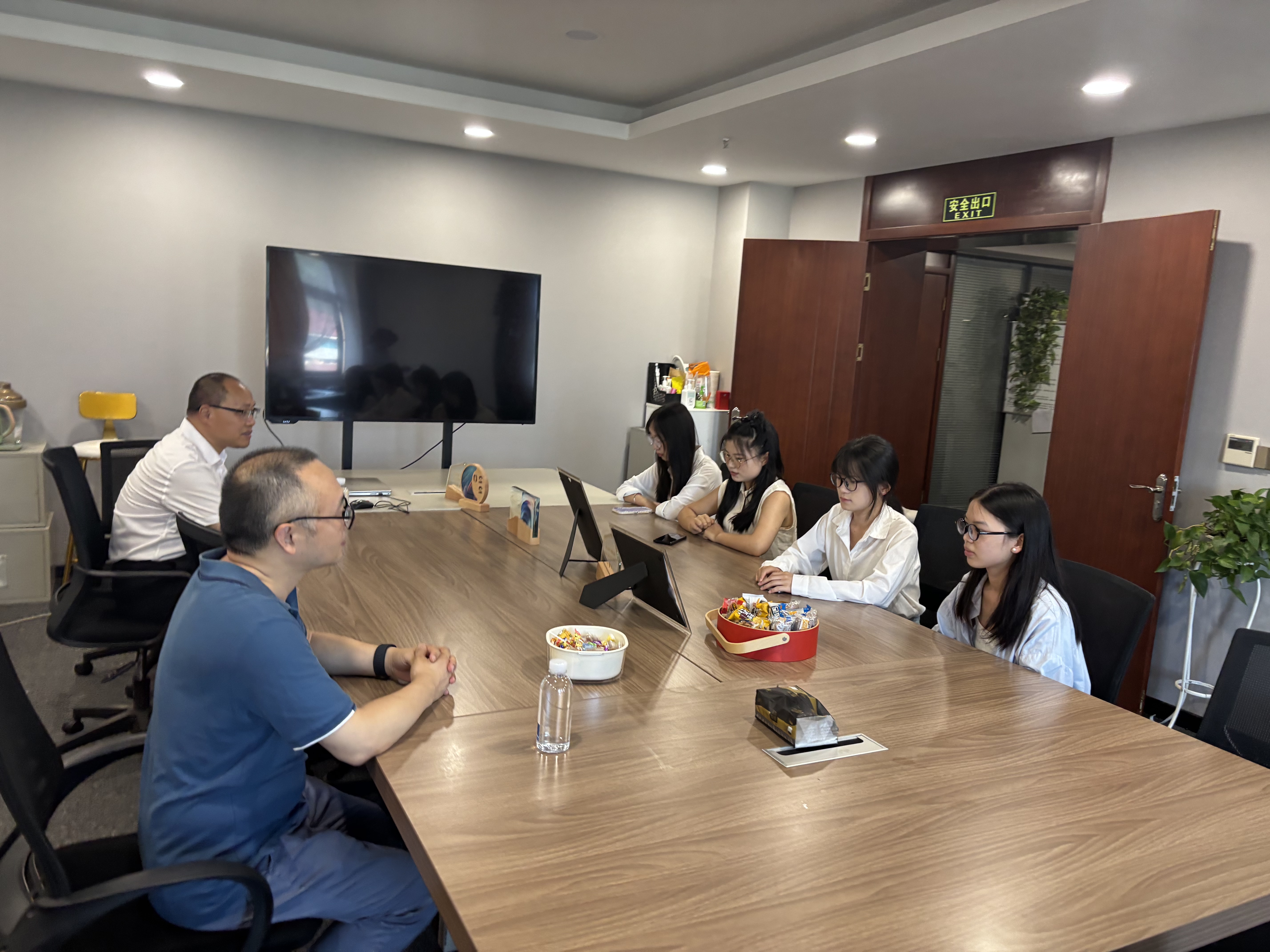 7月30日上午,小象直播 专业实习指导教师王进伟、刘轶中赴华创证券花溪营业部看望正在参加专业实习的2022级本科生。华创证券花溪营业部经理王迪梅热情接待并组织了座谈会。