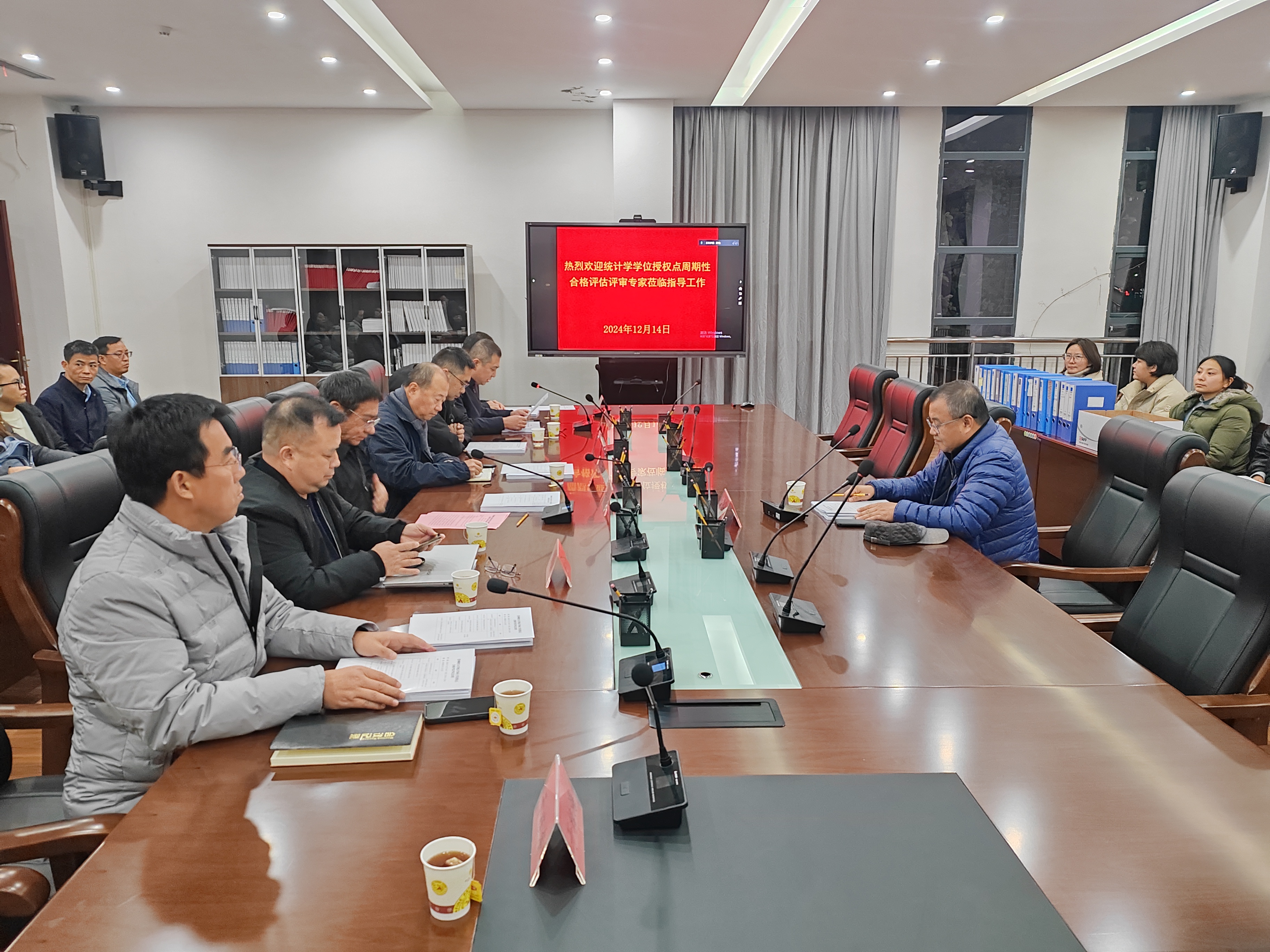12月14日,我校在修德楼311会议室召开统计学学位授权点周期性合格评审会。评估专家组由南开大学统计与数据科学学院执行院长、教育部统计学学科评议组成员、国务院政府特殊津贴专家王兆军教授,教育部高等学校统计学类专业教学指导委员会主任委员、北京大学房祥忠教授,厦门大学副校长、教育部统计学学科评议组成员、国家杰出青年科学基金获得者方颖教授,中国统计教材编审委员会委员、复旦大学朱仲义教授,南京审计大学统计科学大数据研究院院长、教育部统计学类专业教学指导委员会委员、江苏省政府统计与大数据研究院院长、江苏省理学1类研究生教学指导委员会委员林金官教授等组成。校党委副书记、校长缪坤和,中国统计学会副会长、教育部高等学校统计学类教学指导委员会委员、原副校长葛建军,研究生院院长曾宇航,小象直播 党委书记虞帆,小象直播 院长焦建军,大数据统计学院副院长于桂海,统计学学位授权点师生代表参与此次会议。会议由小象直播 党委书记虞帆主持。
