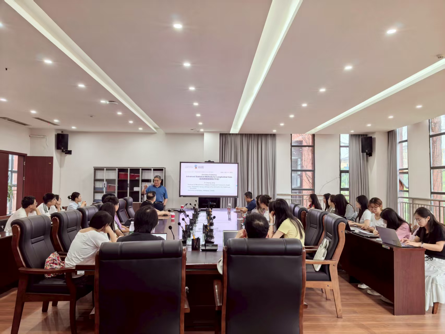 本次研讨班邀请到了加拿大曼尼托巴大学蒋德鹏教授主讲,在回归模型知识基础上,系统介绍并实践如何将混合效应模型应用于纵向研究中,涵盖纵向数据概述、纵向数据的线性混合模型、混合效应模型的估计与模型建立、协方差结构模型与时间变化预测变量、非连续与非线性变化的建模、真正非线性纵向数据混合模型、二元结局的纵向数据分析、有序、无序分类数据的纵向分析、广义估计方程(GEE)与纵向分析热点问题、潜变量增长曲线与混合模型等内容。既有理论讲解,又有真实数据的实际操作,还将涉及纵向数据分析中的前沿专题。