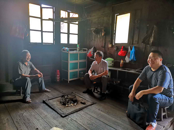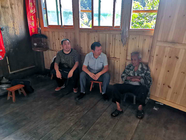由学校党委组织部正处级专职组织员罗玉江送到村里后,7月14日、15日两天,朱吉韬就在学校纪委监察专员办副主任、担任展啊村第一书记吴长勇的带领下立即投入工作,对展啊村建档立卡贫困户进行入户走访,为本月下旬即将开展的国家脱贫攻坚普查入户(村)问卷调查做好准备。