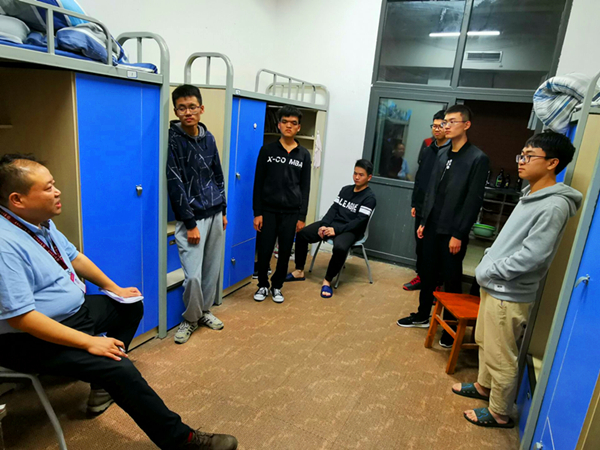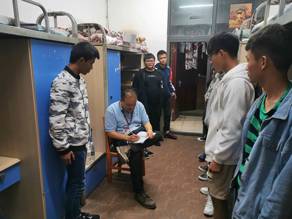 在学生寝室,胡伟与同学们亲切交谈,了解他们入校以来的思想动态、工作和生活情况,以及存在的困难,对同学们提出的意见建议认真记录,并对同学们在大学阶段的学习、生活等方面给出了中肯的建议。胡伟勉励2019级学生要积极调整调整心态、尽快转变角色,努力适应大学生活;学习上要一如既往保持备考时的势头,不能有丝毫松懈,学好数学、英语等基础课程,为将来继续求学奠定扎实的基础;提醒大家要加强体育锻炼,强健体质体魄。最后胡伟特意叮嘱学生们要增强安全防范意识,注意保护自己的人身及财产安全,注意防范校园贷、网络电信诈骗等身边的陷阱。