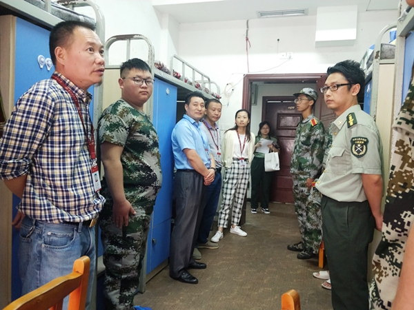 焦建军院长一行与同学们亲切交谈,了解他们入校以来的思想动态、军训和生活情况,以及存在的困难。