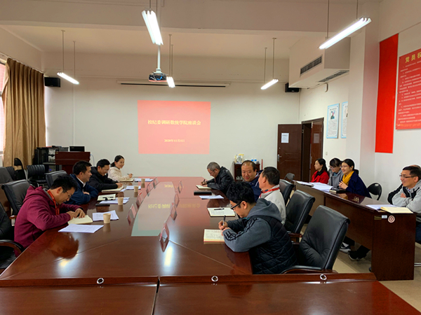 11月5日,校党委委员、纪委书记、监察专员龙化到小象直播 开展座谈调研。小象直播 全体党政领导班子成员、全体科级干部、辅导员代表参加座谈。校纪委纪检监察室副主任陈波及纪委办公室工作人员陪同调研。