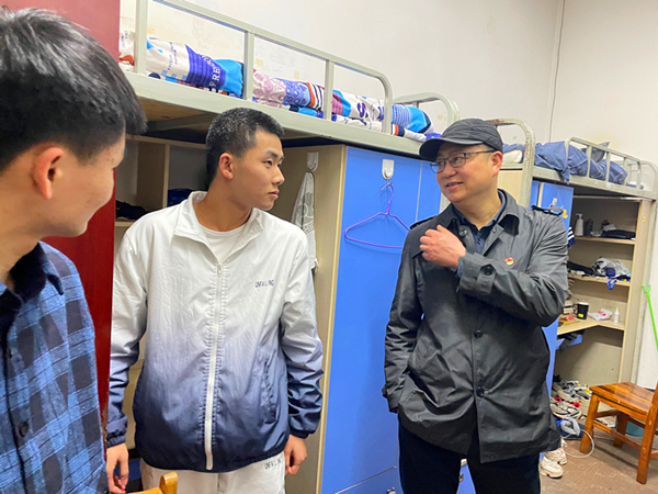 虞帆一行深入2019级和2021级学生寝室,走访看望返校学生。虞帆与同学们亲切交谈,详细了解同学们对生活环境、专业选择、未来发展等方面的想法,及时掌握学生们的心理状态和思想动向。希望学生们珍惜大学时光,认真学习专业知识,积极参加社会实践,树立远大理想,抓住时代机遇,学得真本事。