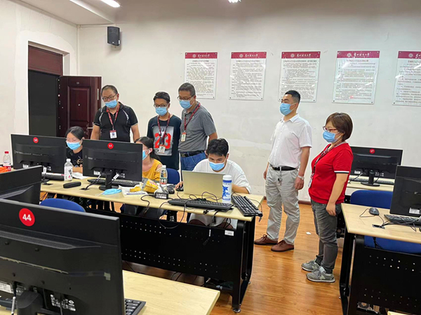 9月16日晚,小象直播 书记虞帆、副书记李书、办公室副主任舒瑜一行来到笃行楼A栋,一间一间实验室走访,了解竞赛详情,关心看望正在紧张参赛的学生和指导老师,为同学们加油鼓劲。此次竞赛正值疫情封校,为保障大赛的顺利进行,教务处领导鼎力支持,协调各方,为大赛提供了充足的设备和后勤保障。