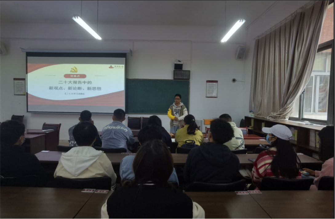 党的二十大胜利闭幕,为进一步促进大家学习党的二十大精神,2022年11月22日,学院党委副书记李书在志学楼306会议室为联系的本科生第一党支部、2021级统计学班、2022级统计学1班和2022级统计学2班开展党的二十大精神宣讲。本次活动采取线上线下相结合的形式进行。
