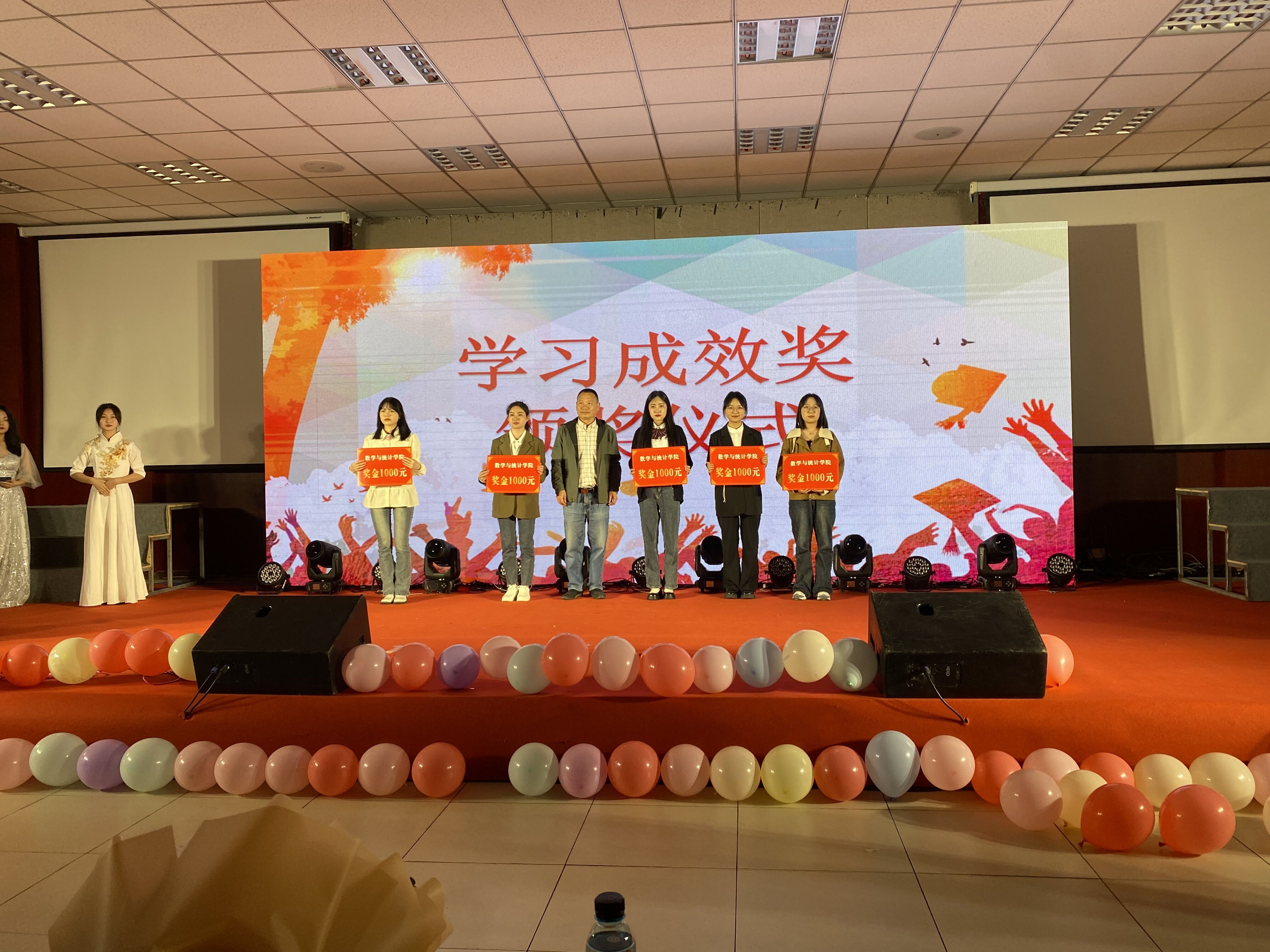 成效奖颁奖仪式上,院长焦建军发表祝贺感言,今年我院取得考研率名列前茅的好成绩,希望同学们再接再厉,明年再创佳绩。学院领导为26位考上研究生的同学颁发了学习成效奖。