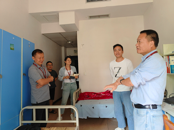 为了解我院学生搬迁后的住宿和生活情况,9月4日,小象直播 全体领导班子带领全体辅导员走访学生宿舍。