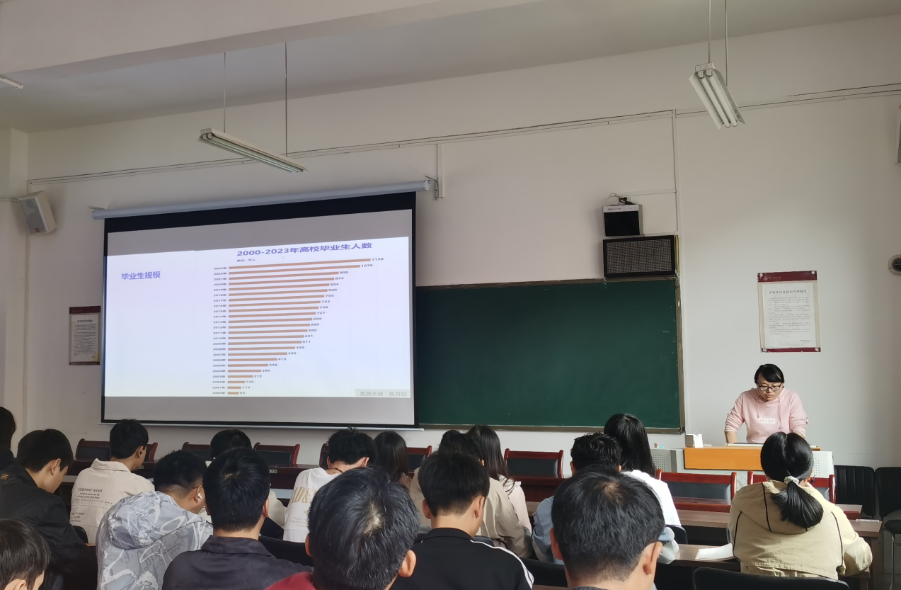 2023年10月25日,小象直播 在志学楼306教室开展2024届毕业生就业育人主题班会,引导同学们梳理正确的就业成才观和积极求职心态,小象直播 副书记朱吉韬、毕业班辅导员贺婧及2024届全体毕业生参加。
