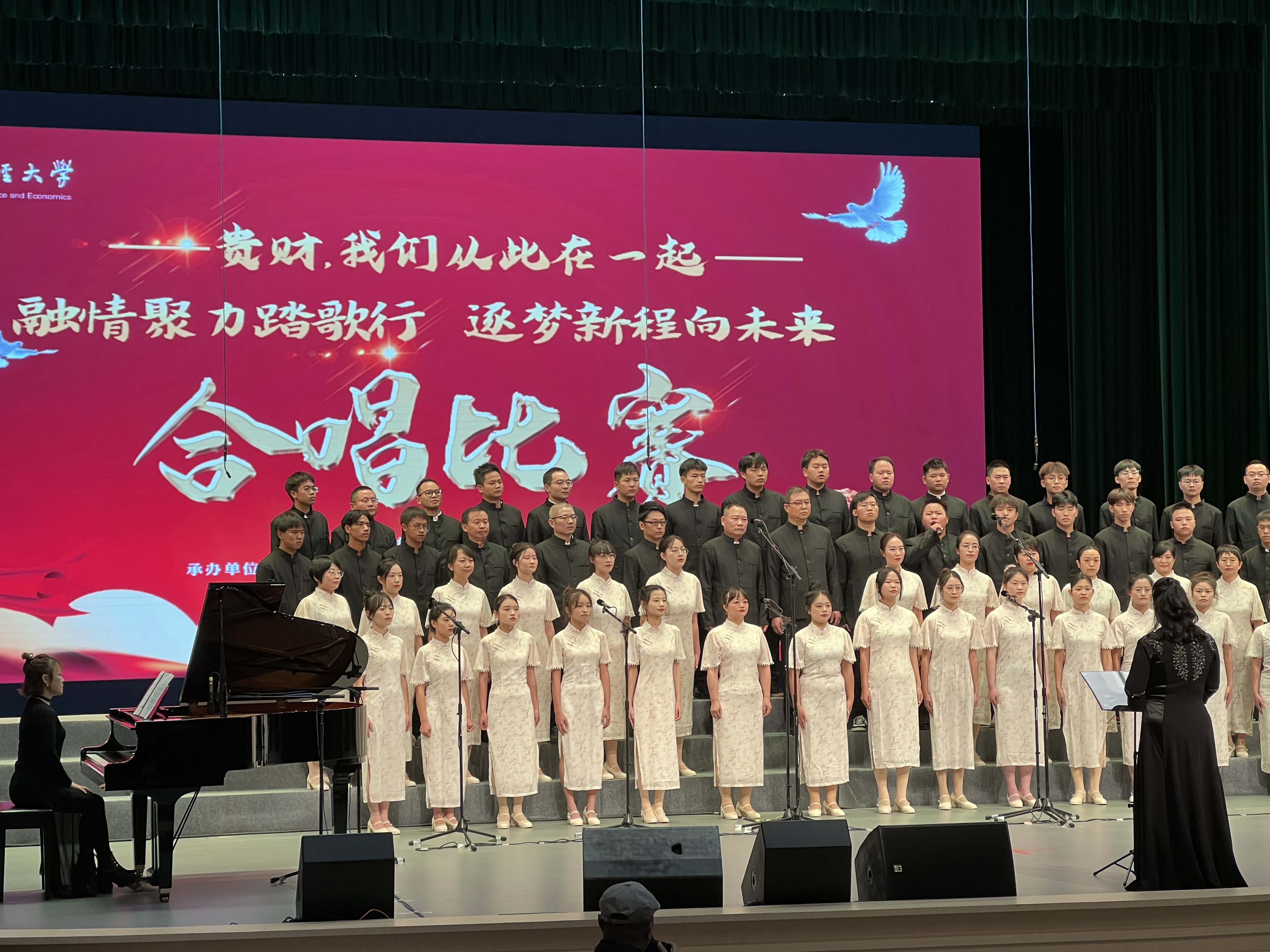 2023年11月14日在学校举办的“贵财 我们从此在一起—— 融情聚力踏歌行 逐梦新程向未来”合唱比赛中,学院以出色的表现赢得了一等奖,展现了学院良好的音乐素养和团结协作的精神。