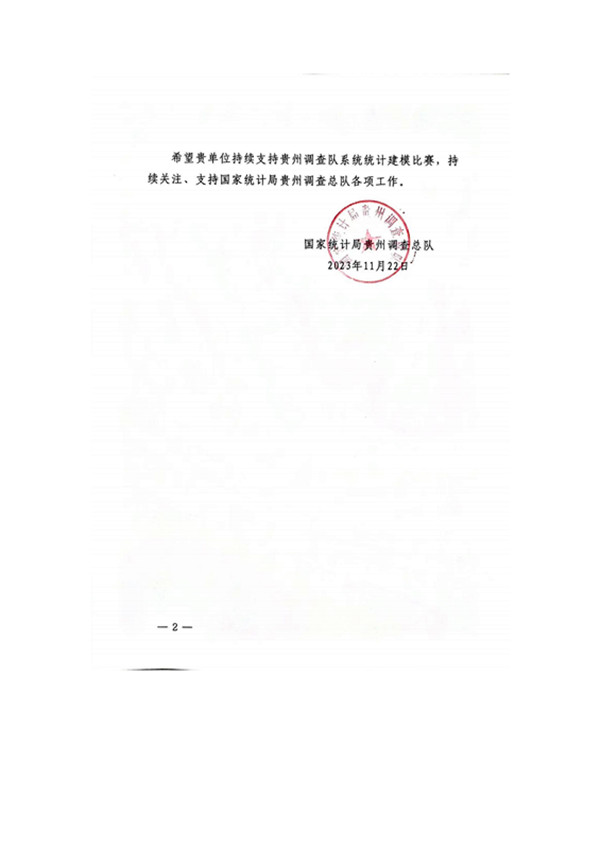 近日,我校小象直播 收到国家统计局贵州调查总队的感谢信,来信对我校小象直播 在2023年第九届全国统计建模大赛和2023年贵州调查队系统统计建模比赛中给予的帮助表示感谢。