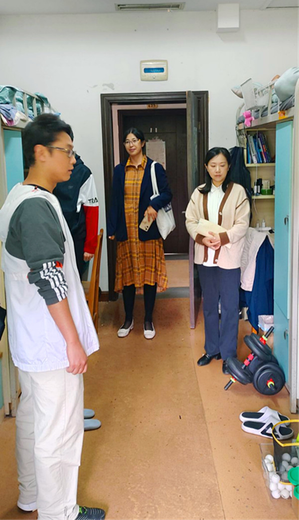 6月4日,学院党委书记虞帆、党委副书记李书和辅导员深入“一站式”学生社区,实地走访樱花苑一栋、翠竹苑一栋、翠竹苑二栋学生公寓,并与同学们亲切交谈。