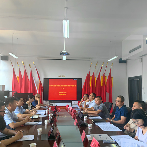 9月20日上午,贵安新区投资促进局党组成员、副局长胡猛一行到我院座谈交流。学院党委书记虞帆,党委副书记、院长焦建军以及统计学教师代表参加座谈。学院党委副书记朱吉韬主持。