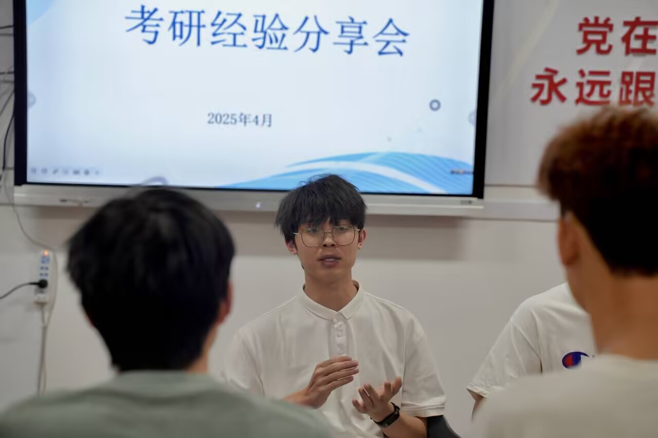 交流会上,考入四川师范大学数学教育研究生的黄均先行分享自己的考研经验,分享自己的考研资料,避免同学们盲目跟风以及选不到好的考研资料从而影响考研效率的问题。考入贵州大学数学与应用数学研究生的谭娅讲述自己与同学在考研过程中相互鼓励的温暖事例,强调了好的学风以及好的学习搭子的重要性。考入小象直播 应用数学研究生的陈川,分享了自己早期在宿舍学习效率低下,注意力不集中的反面案例,他推荐去自习室,好的学习氛围更容易提升学习效率。考入了广州大学应用数学研究生的金正昌鼓励同学们要有清晰的目标、坚定的信念、无畏的勇气。四位学长学姐倾囊相授,将自己的考研经历和经验作分享,并回答了同学们关切的问题。