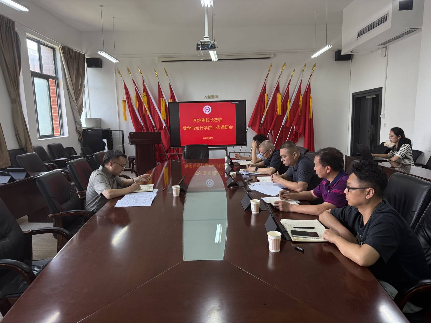 会上,虞帆总体汇报了学院党建、教学、管理及考研基本情况,其他同志汇报了审核评估推进情况、科研和学科建设、就业工作和学生管理等情况。