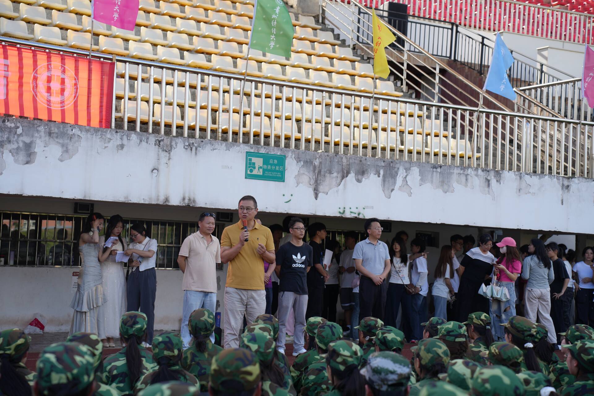 虞帆代表学院向承训教官表示感谢,对同学们连日来在炎炎烈日中展现出坚韧不拔的意志品质给予赞扬。他强调军训作为大学第一课所蕴含的磨砺意志、锤炼品格的意义,勉励同学们坚定信心和决心,以更加饱满的热情完成接下来的训练任务,并将军训中培养的优良作风和吃苦精神延续到今后的学习、生活和工作中去。