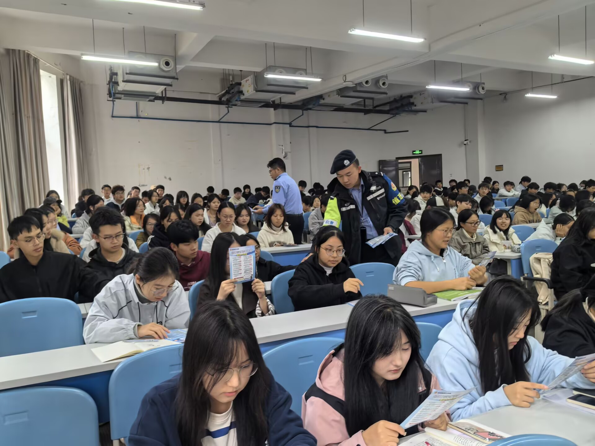 宣讲中,民警们围绕“海南套代购”等真实案例,生动介绍了目前主要的校园诈骗类型、特征及其识别和防范要点,结合当代大学校园环境和年轻人群的兴趣爱好特点,向同学们传授了在校大学生应如何加强个人信息保护、识别诈骗手段,以及避免触及法律红线等内容,提醒同学们筑牢防诈思想防线。