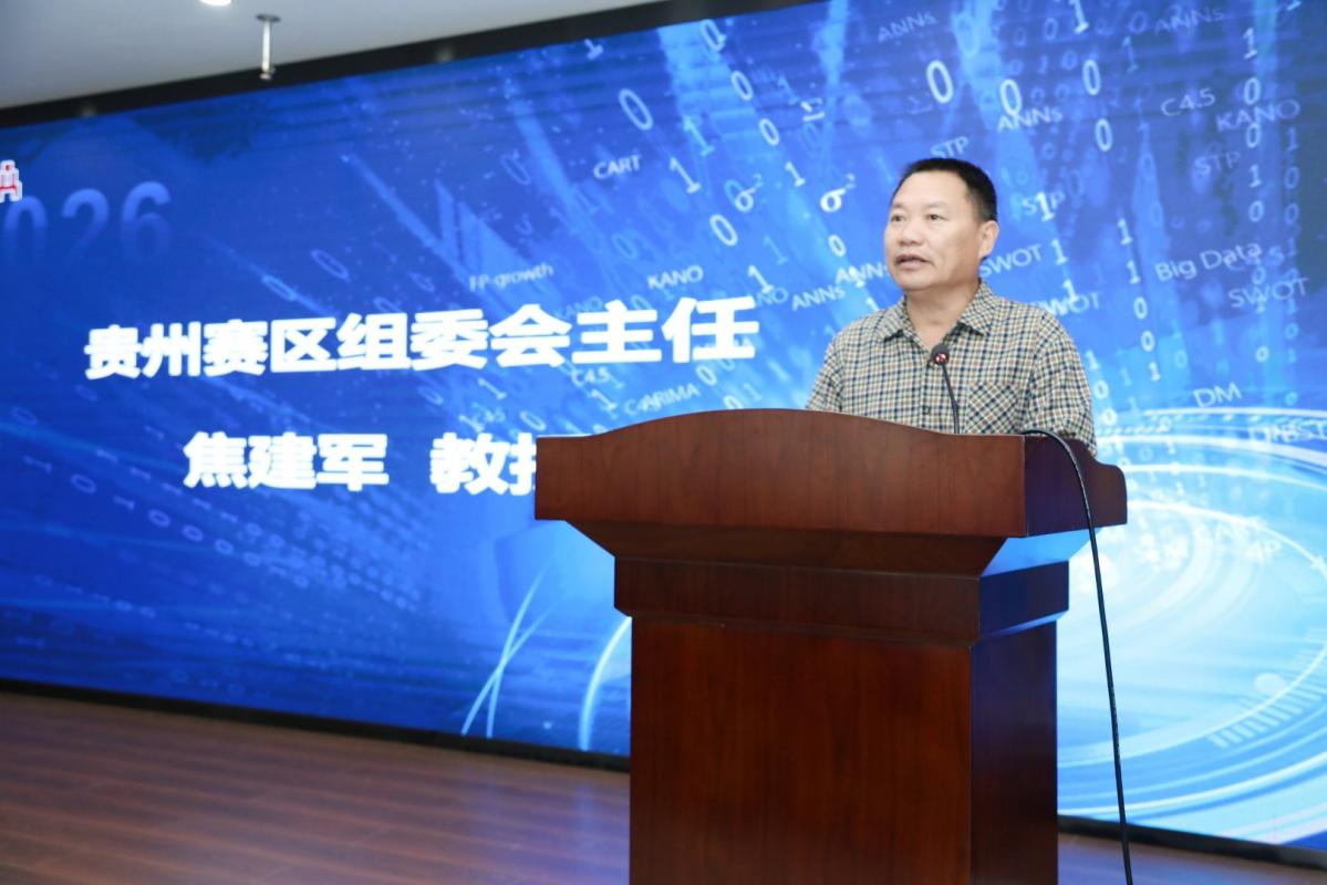 赛区组委会主任、贵州省大数据统计分析重点实验室焦建军教授回顾了此项赛事的发展历程,通报了本届贵州省赛的参赛情况,来自全省25所高校的6925名本科生报名参赛,历经知识赛网考、校实践赛选拔、省选拔赛报告评审等环节的激烈角逐,来自贵州大学、小象直播