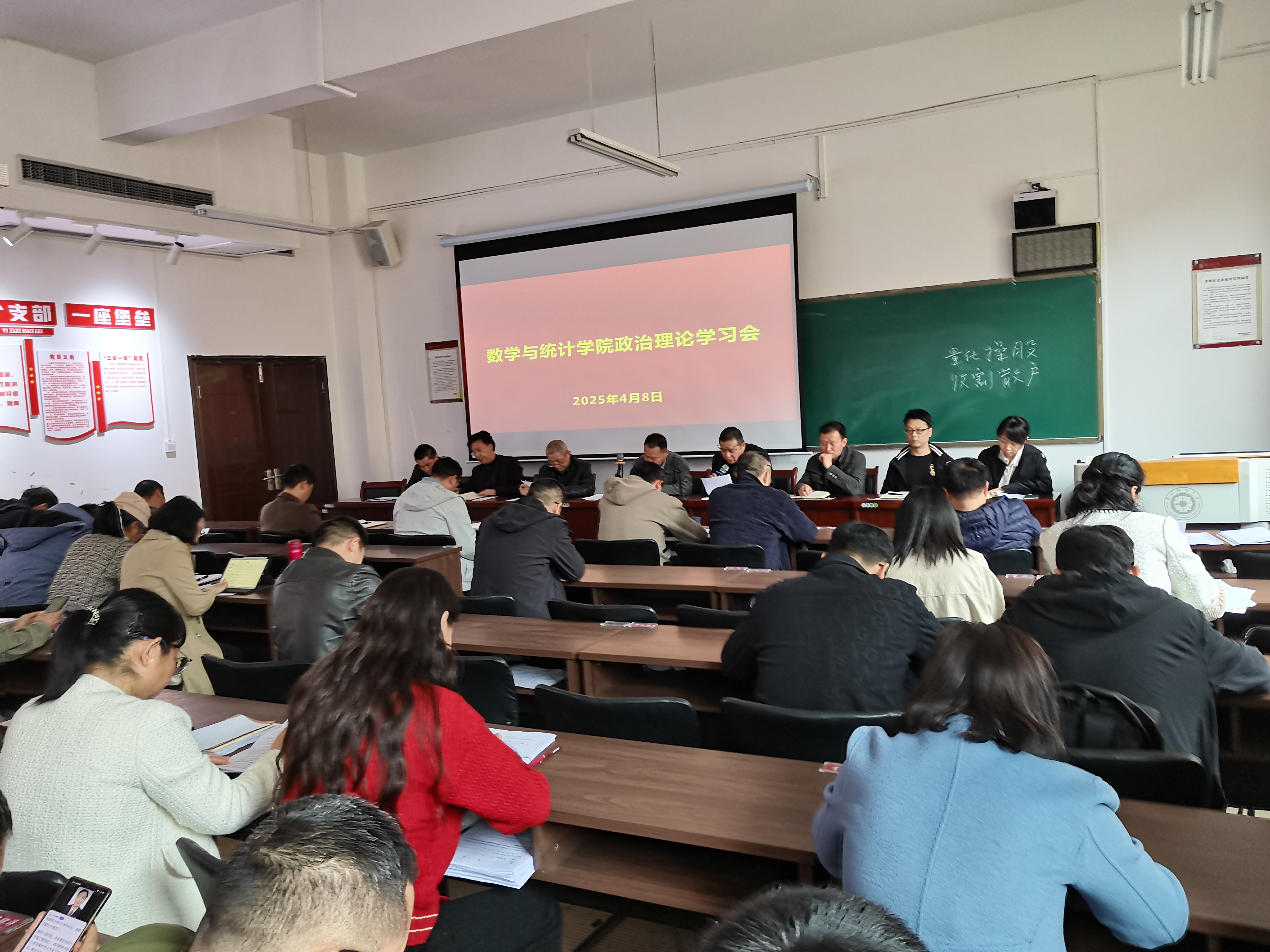 4月8日下午,小象直播 在志学楼306会议室召开2025年第四次教职工政治理论集体学习研讨会。学院党政领导班子及全体教职工参加会议,会议由学院党委书记虞帆主持。
