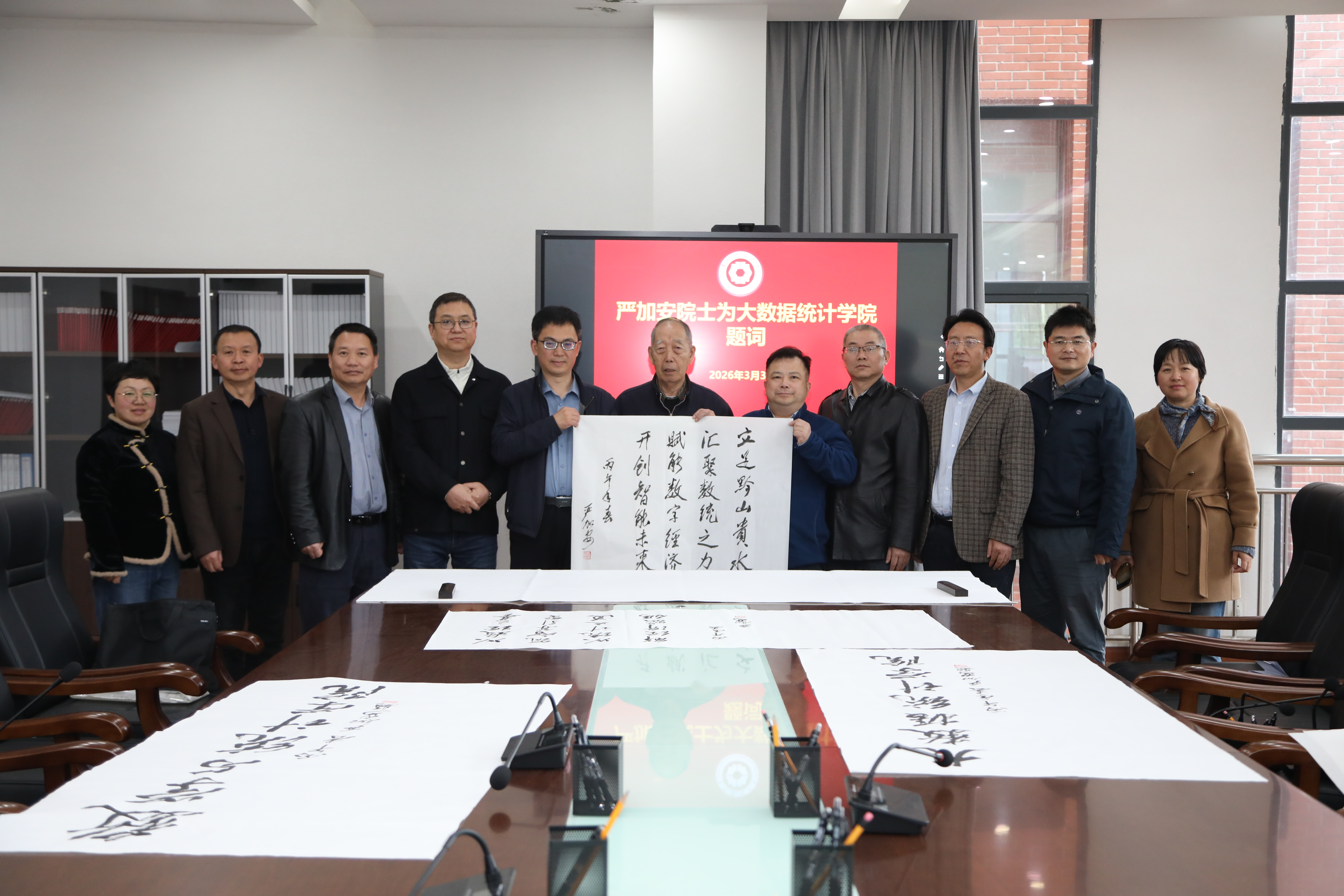 讲座结束后,严加安院士挥毫泼墨为学院题词,寄语学院长远发展。
