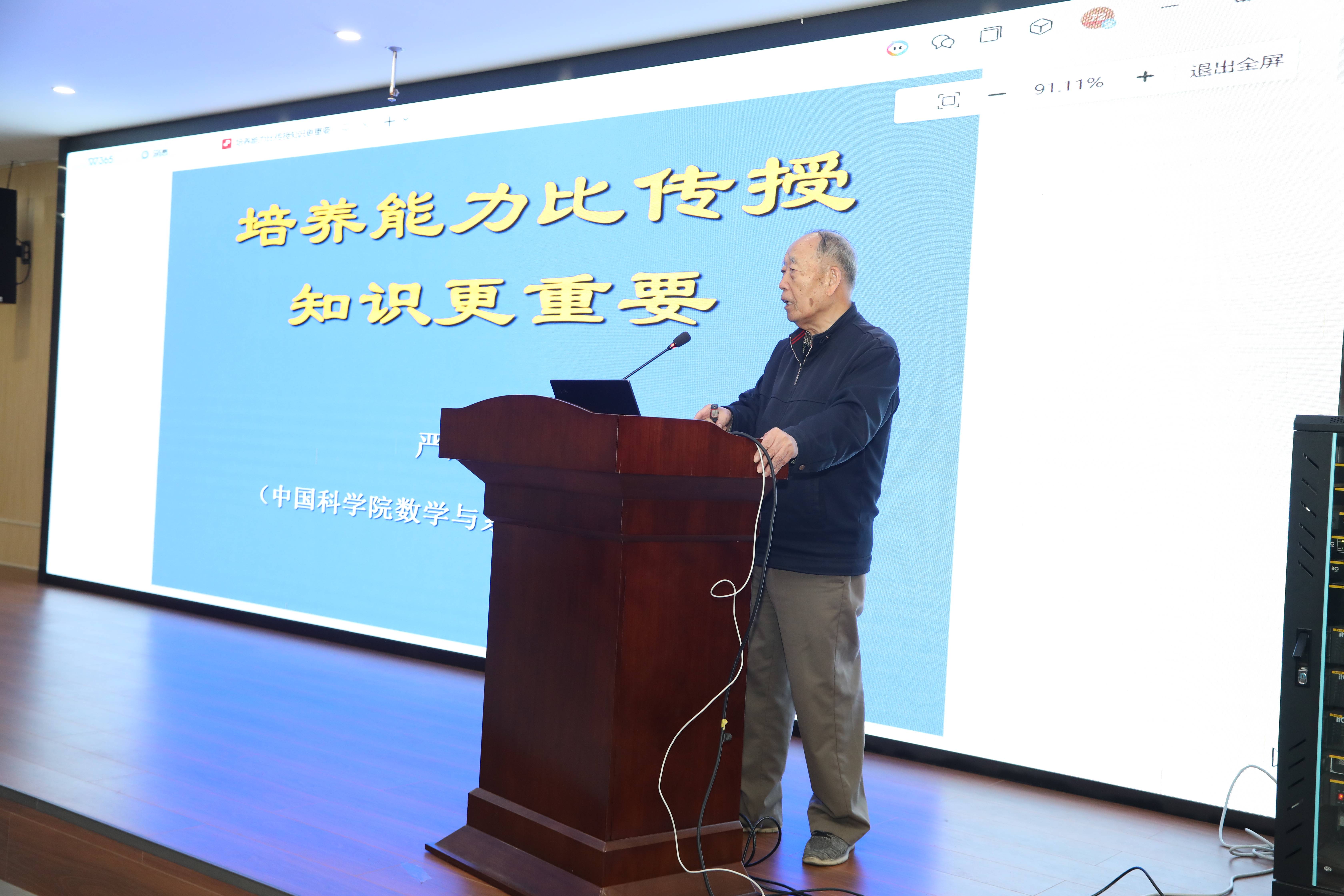 报告会上,严加安院士以《培养能力比传授知识更重要》为主题,围绕大学教育的核心议题展开分享,从大学教育的目标出发,层层递进地阐释了能力培养在人才培育中的核心地位。他直言,大学教育的本质并非单纯的知识灌输,而是以知识为载体,培育学生终身学习、独立思考与解决实际问题的能力,这才是学生适应社会发展的根本。