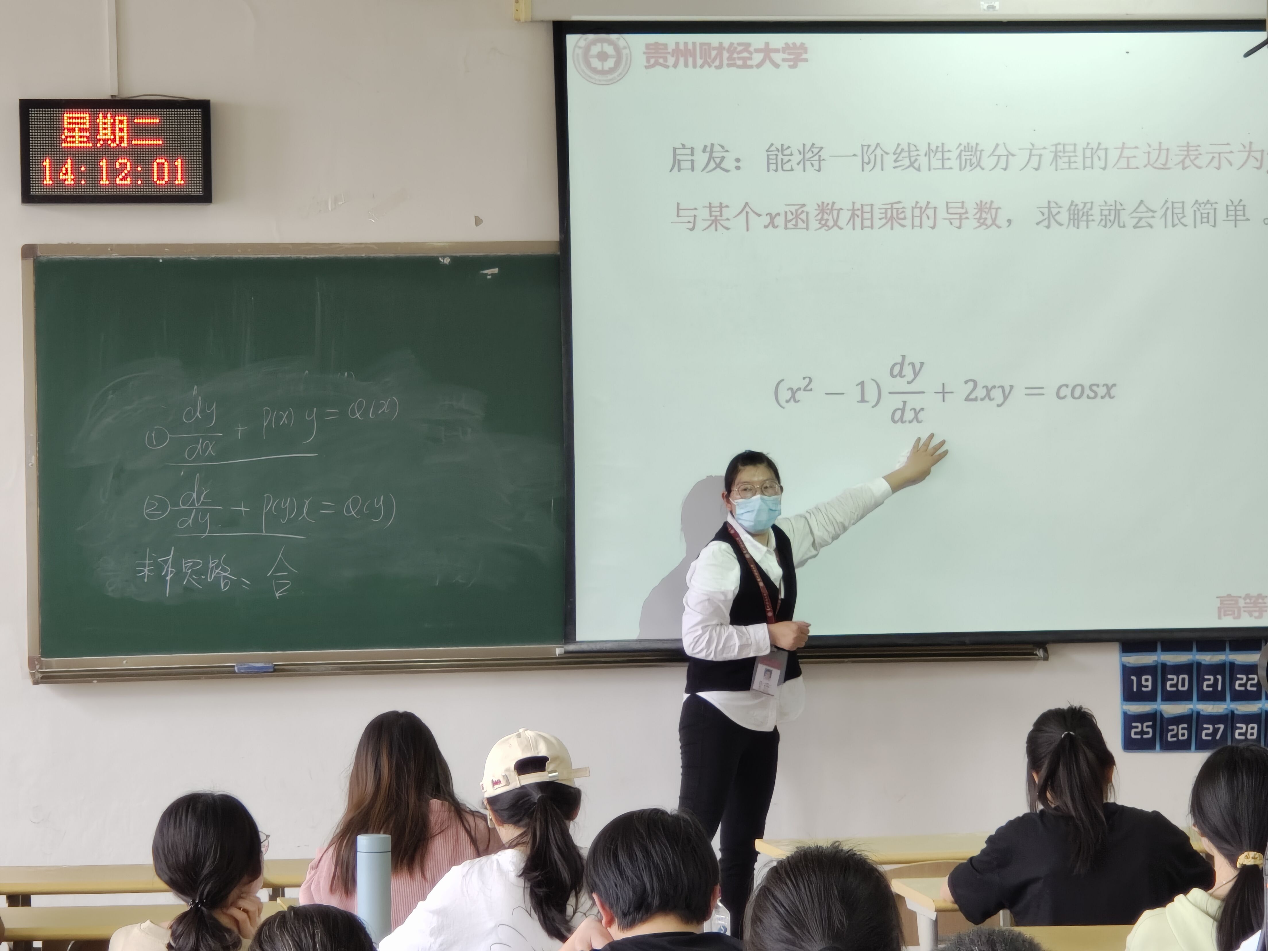 活动中,冉光灿老师为同学们讲解了一阶线性微分方程的求解与解的结构,引入因子相乘法,代替教材上的常数变易法,分析一阶线性非齐次微分方程的解的结构,从而开拓同学们的思维,锻炼了思考能力。在整个过程中同学们都认真听课,积极的回答老师的问题,最后通过随堂小测检验了同学们知识的掌握程度。