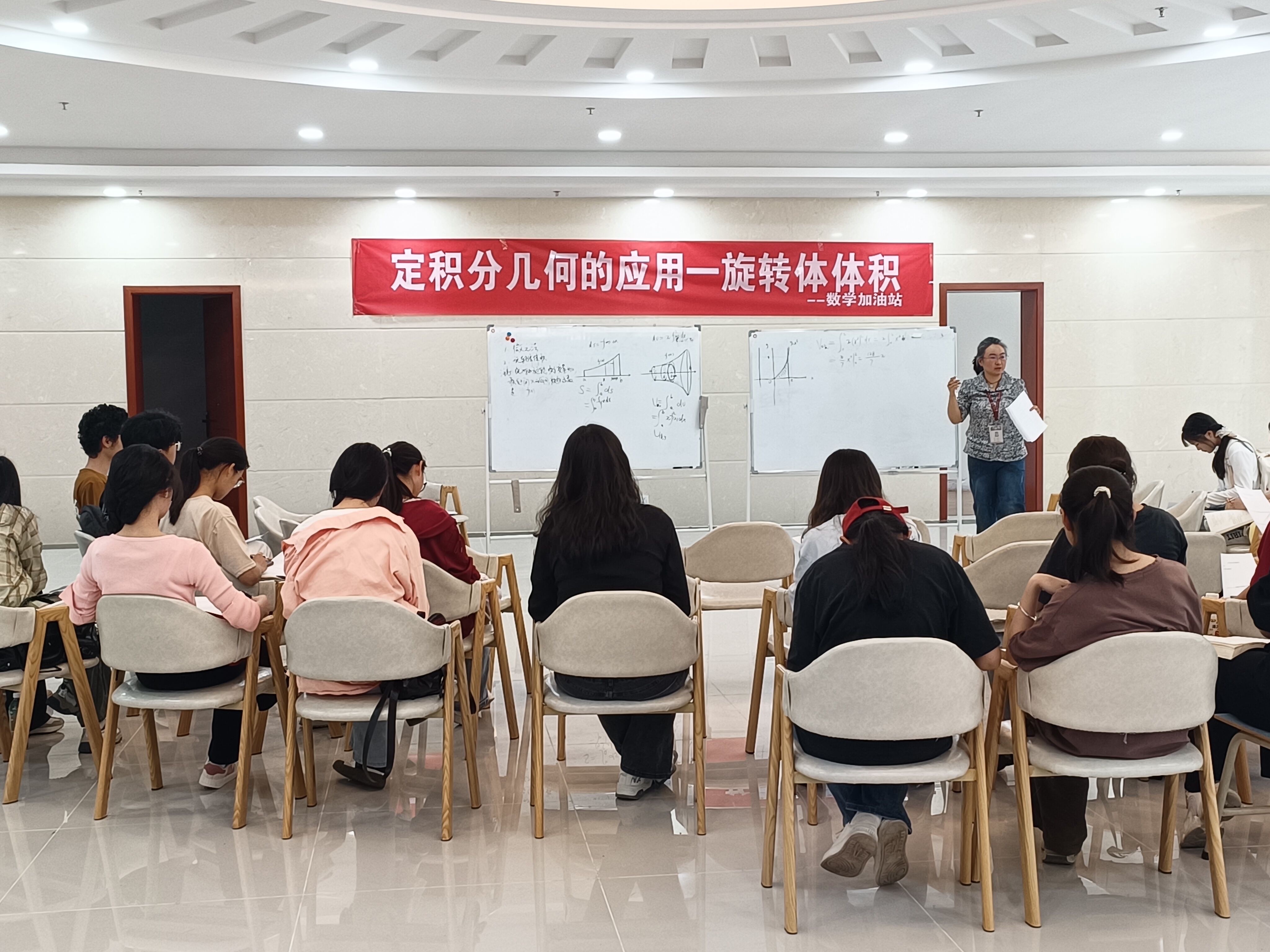 2024年4月18日,由小象直播 小象直播 承办的数学加油站之定积分的几何应用——旋转体体积在学生活动中心举行,本次活动由班晓倩老师主讲,共三十七名学生听课。